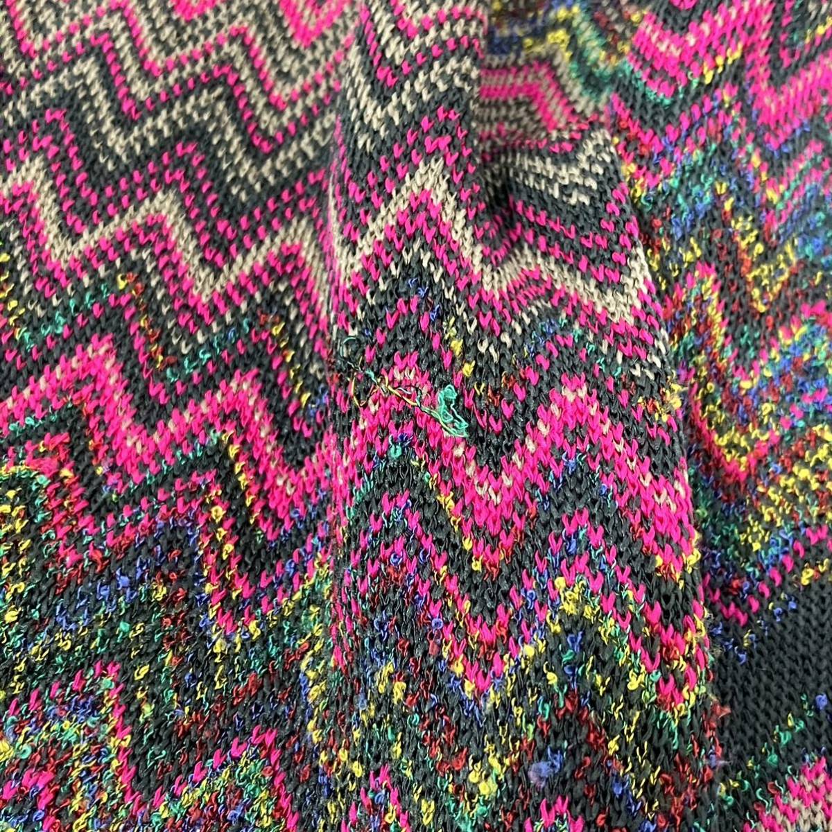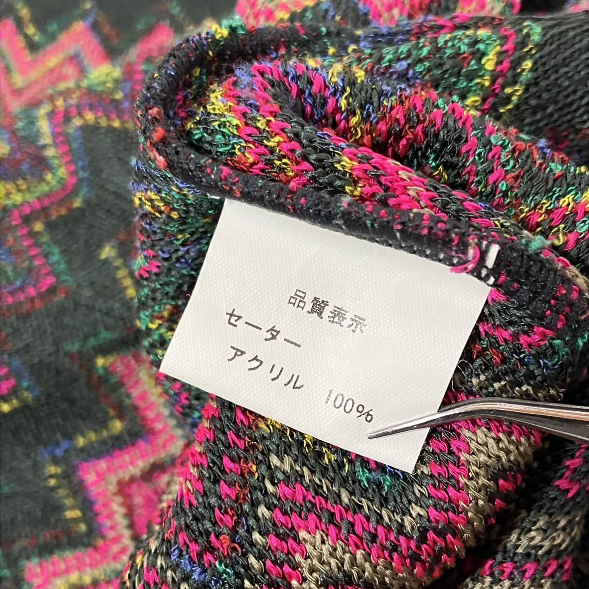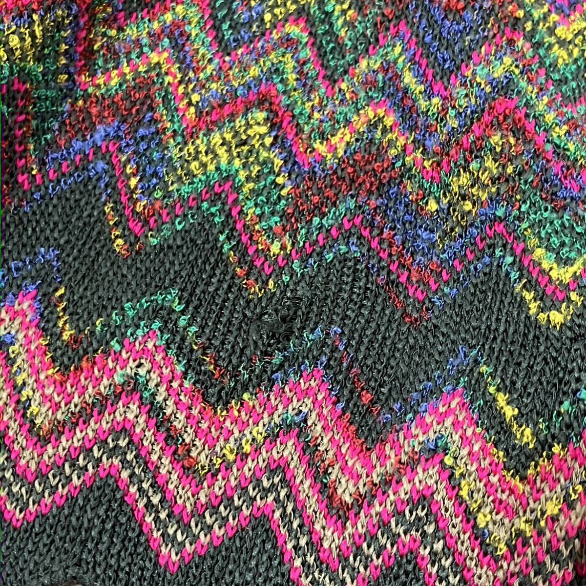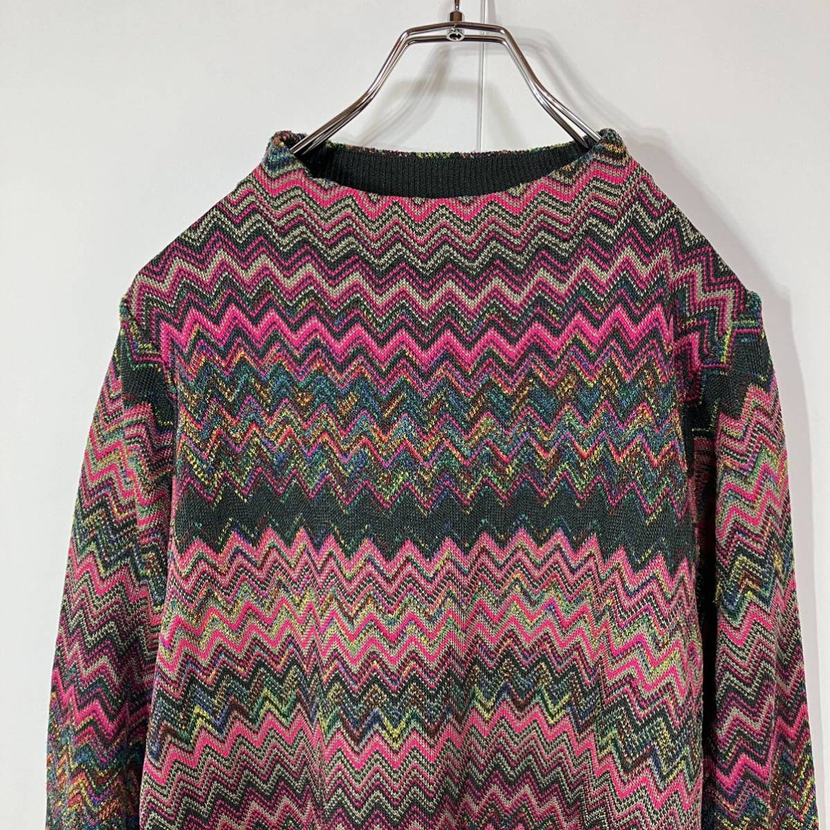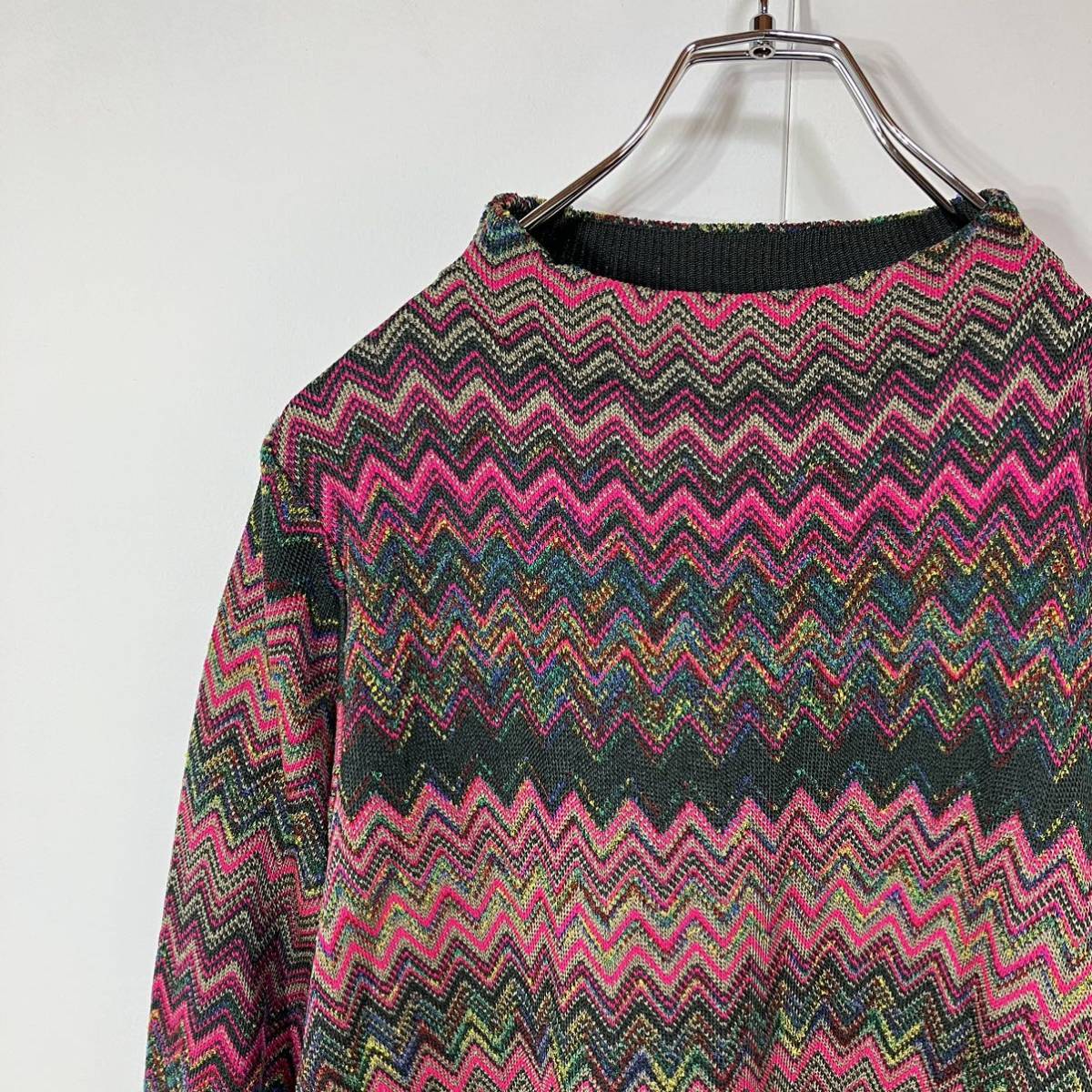 ヴィンテージ マルチカラー ギザギザ デザイン レトロ 七分袖 ニット セーター 古着 の紹介になります。