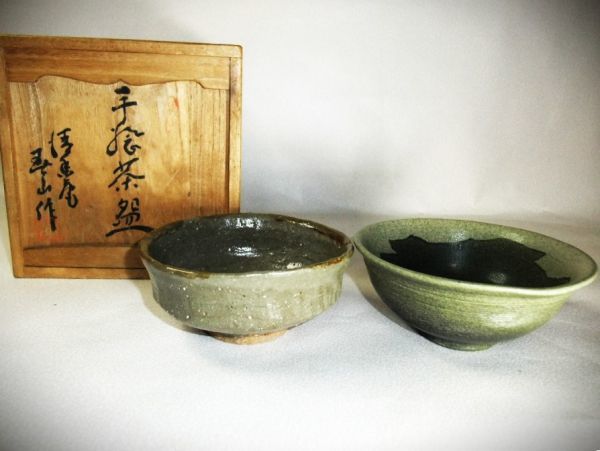 萬古焼 名工 笹岡春山 作 捻茶碗 手びねり 一味斎 海蔵庵 清香庵