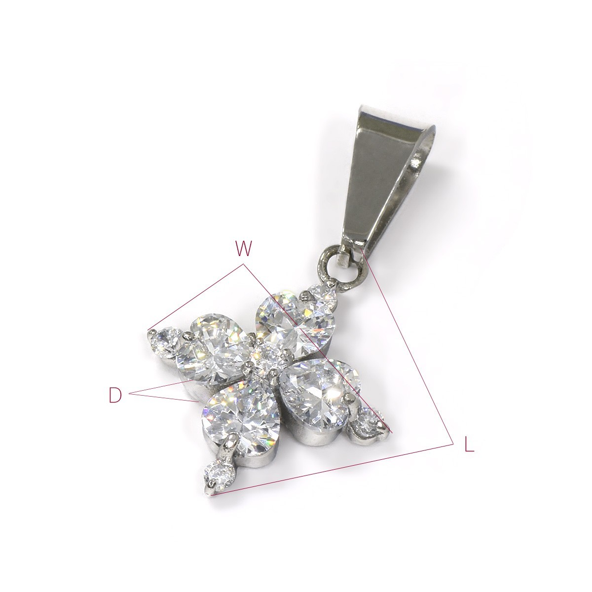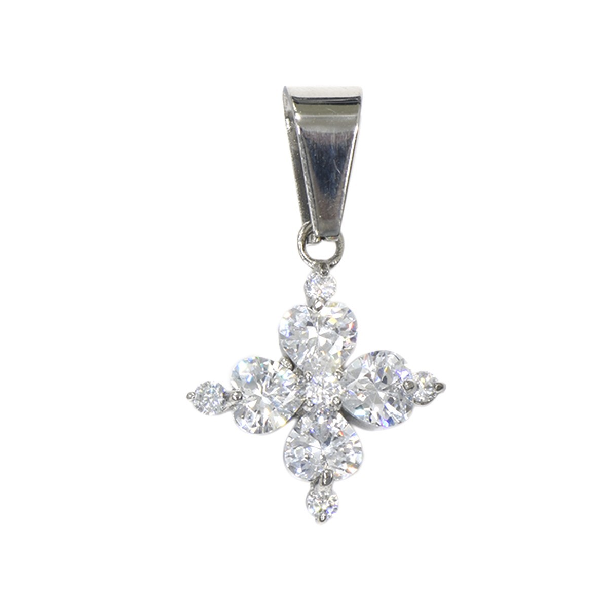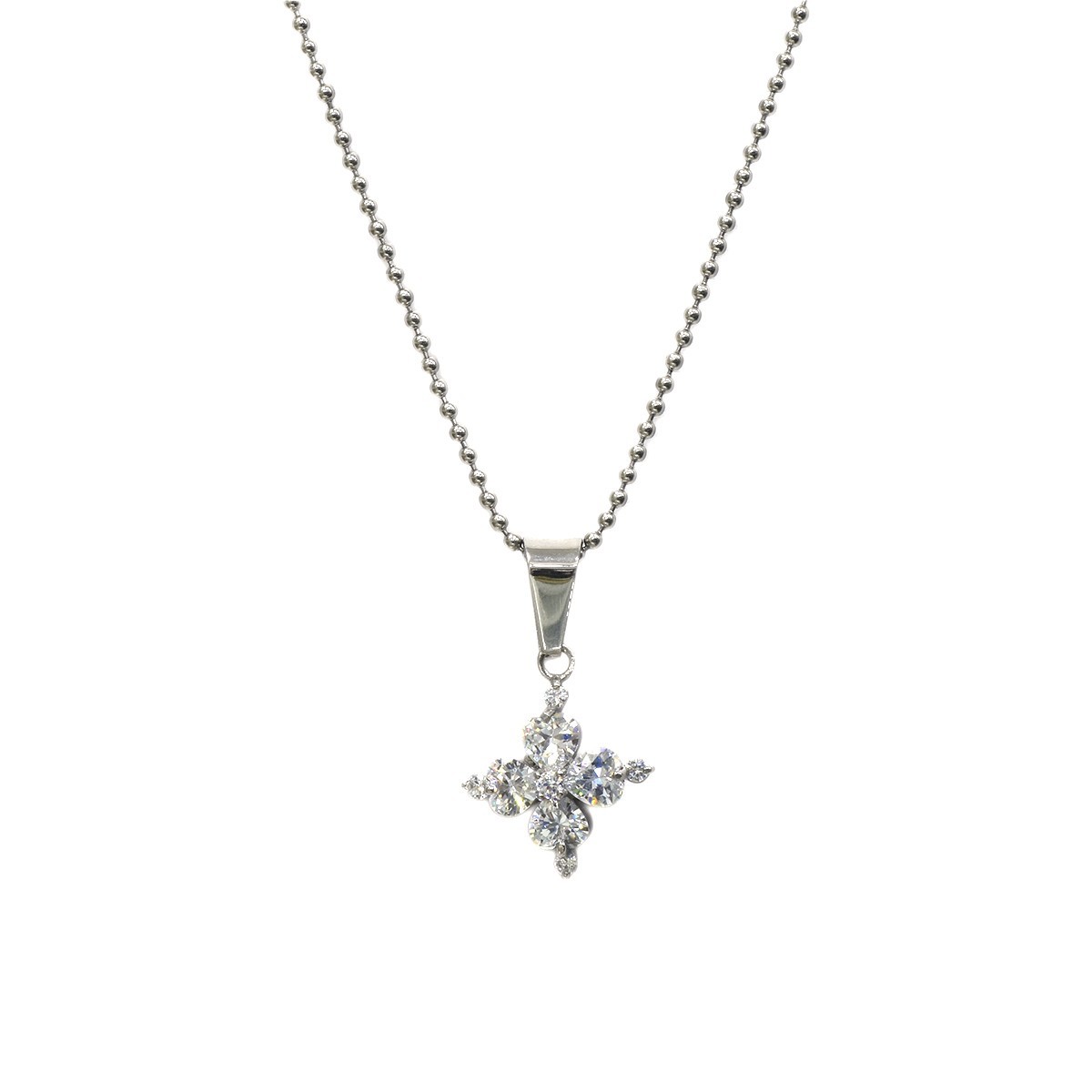 | 沢山のジルコニアがキラキラとゴージャスなフラワーモチーフのステンレス製ペンダントトップです。 素材には本体・チェーン共に金属アレルギーに強いステンレスを使用。 |