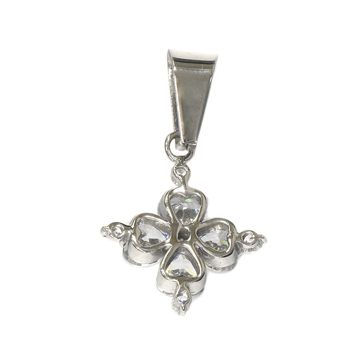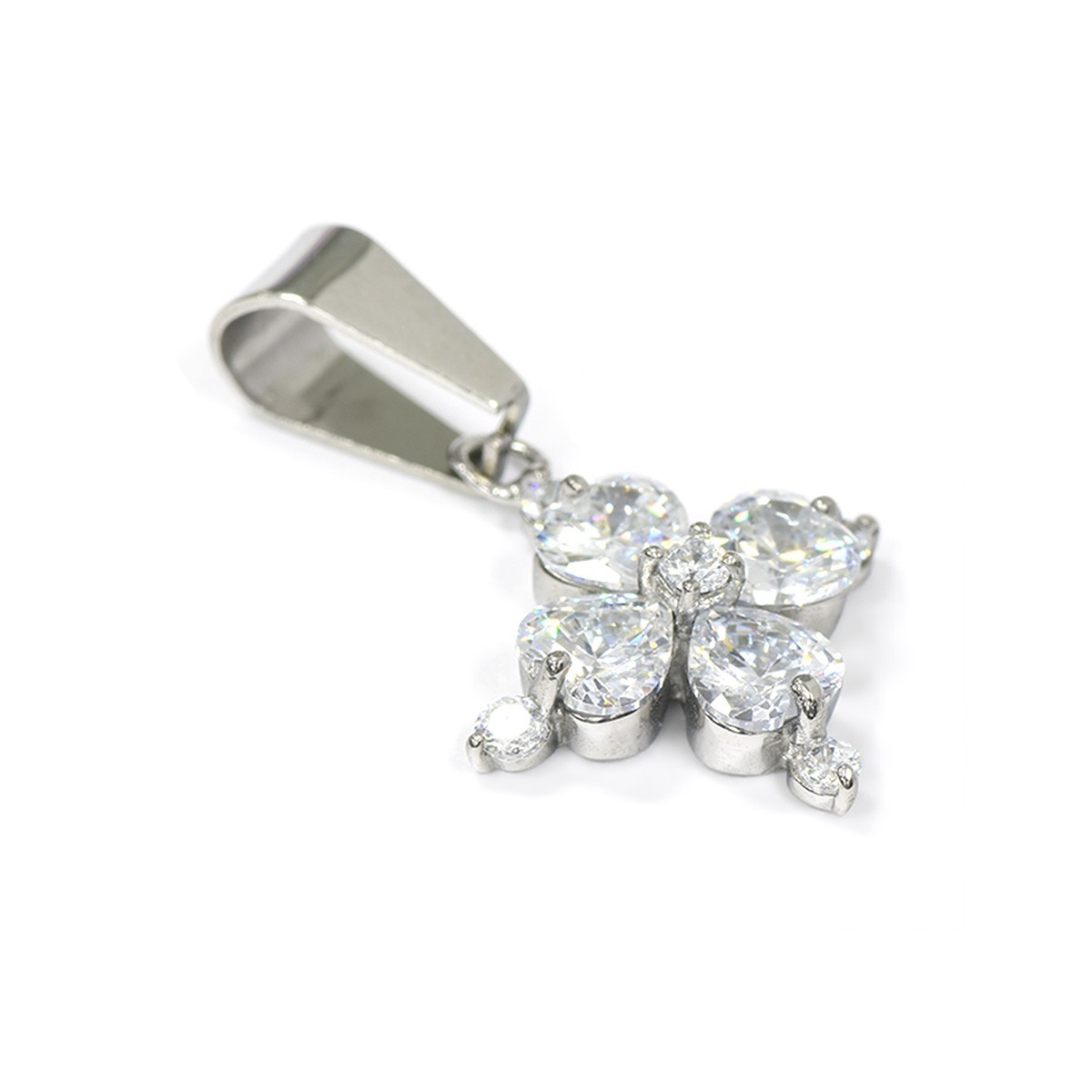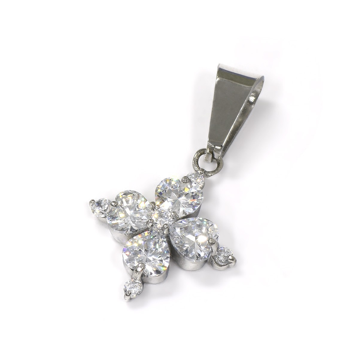 | 沢山のジルコニアがキラキラとゴージャスなフラワーモチーフのステンレス製ペンダントトップです。 素材には本体・チェーン共に金属アレルギーに強いステンレスを使用。 |