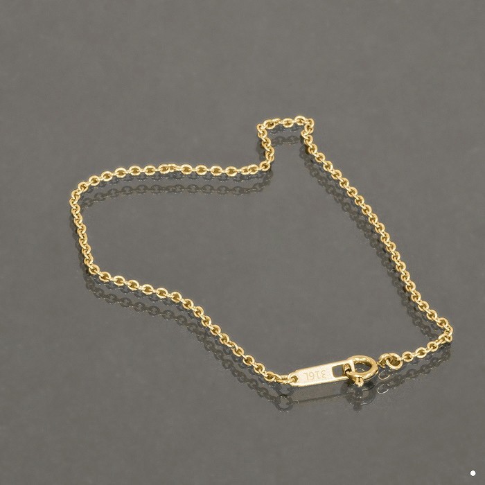 | 小豆(あずき)チェーンは小判チェーン、ケーブルチェーンとも呼ばれ、あづきのような輪が連なった定番のブレスレットです。 ※イオンプレーティング(IPメッキ)とは、金属イオンと不活性ガスを反応させた化合物を製品に蒸着させるコーティングで、ガスの比率でカラーを調整します。従来の鍍金加工に比べて表面耐久性、密着性、工程の安全性が飛躍的に向上しております。 |