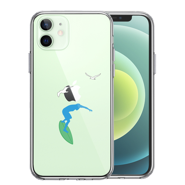 iPhone12mini ケース クリア サーファー カモメ スマホケース 側面ソフト 背面ハード ハイブリッド