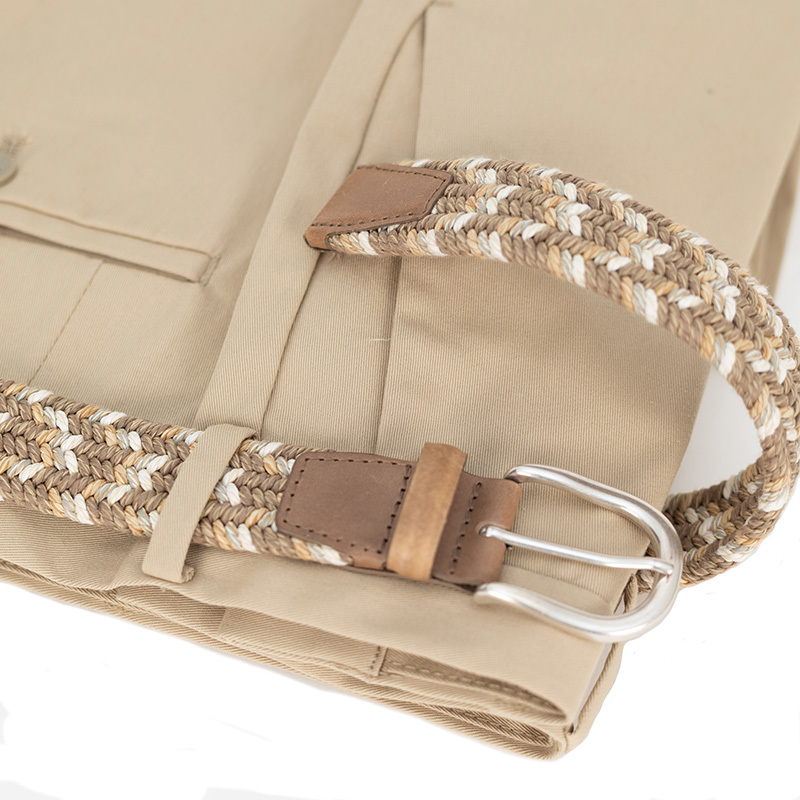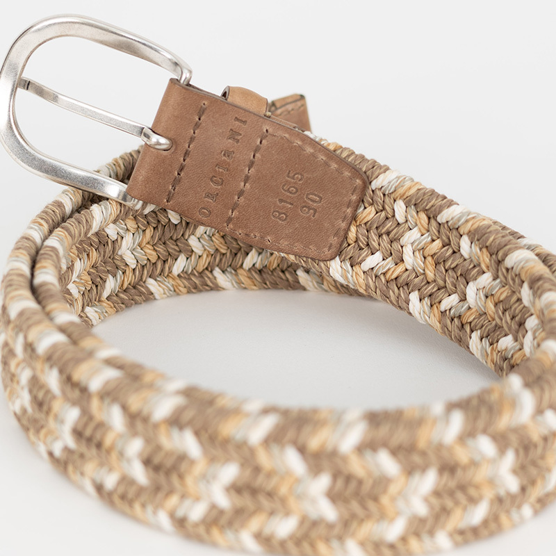 コットン×カーフレザーのインターウーブン(編み上げ)バックルクロージャーベルトのご案内です。