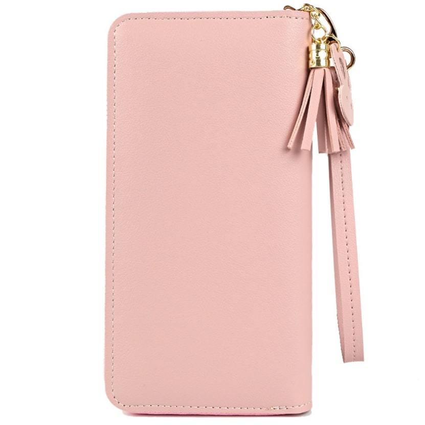 内部はシンプルなピンクカラーを採用。3層に仕切られており、スマートフォンやレシートなどを分けて収納可能な