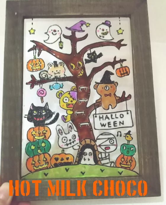 ★NO.L159★ステンドグラス風・2Lサイズ・ハロウィン・森・木・ゴースト・かぼちゃ・看板・ハンドメイド・インテリア・雑貨・アート・絵