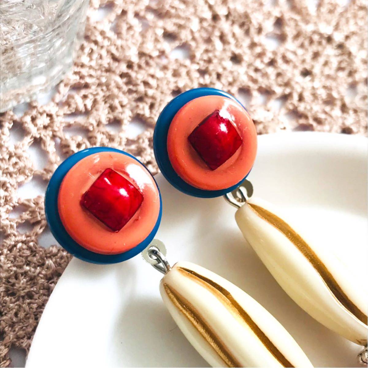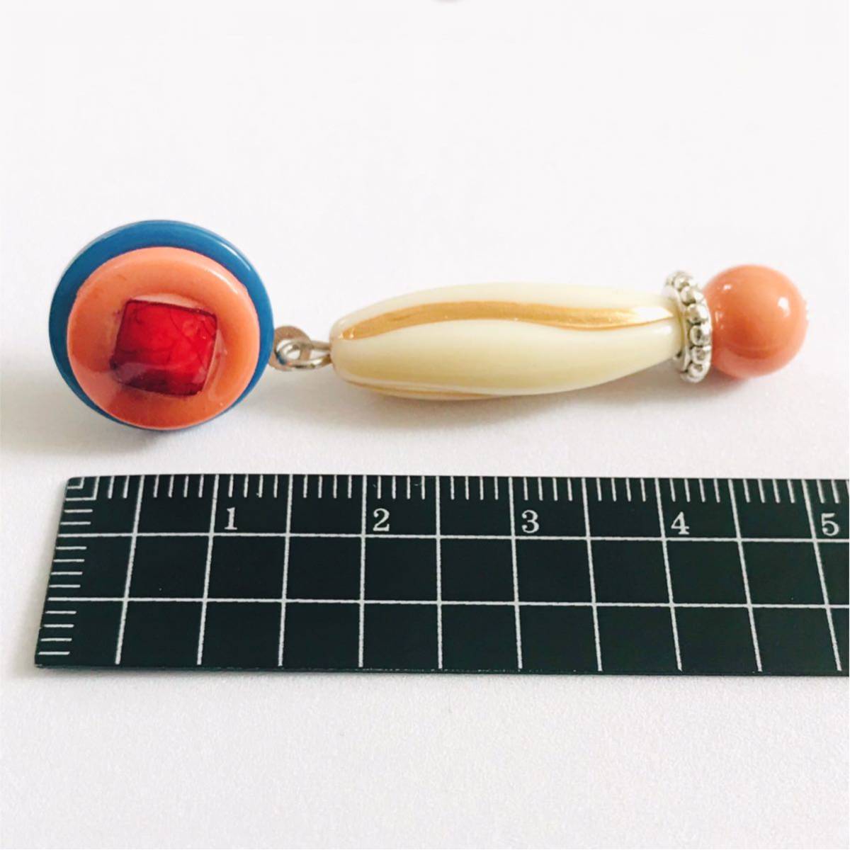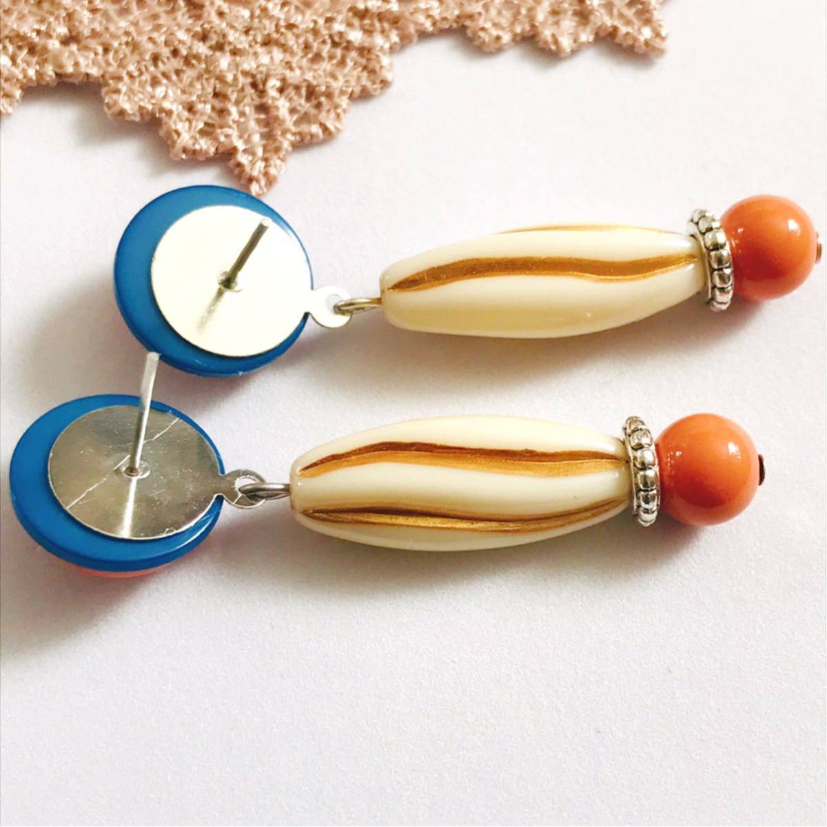 新品即決◆ハンドメイド スタッドピアス ボタン アクセサリー レトロポップ ブルー オレンジ 手作り ゆらゆら