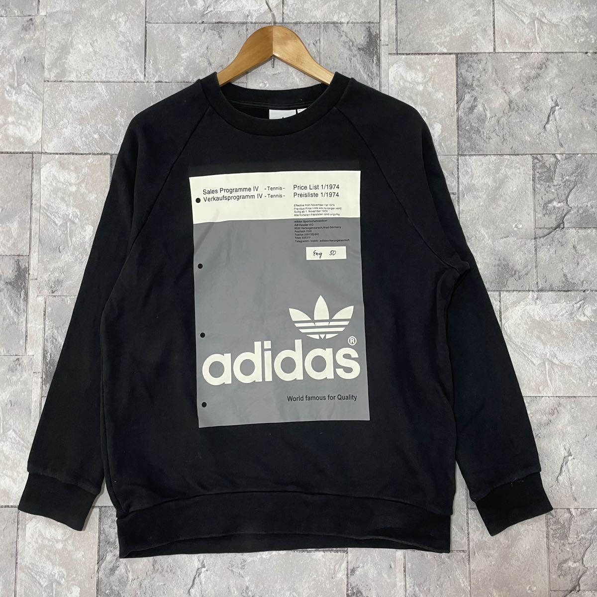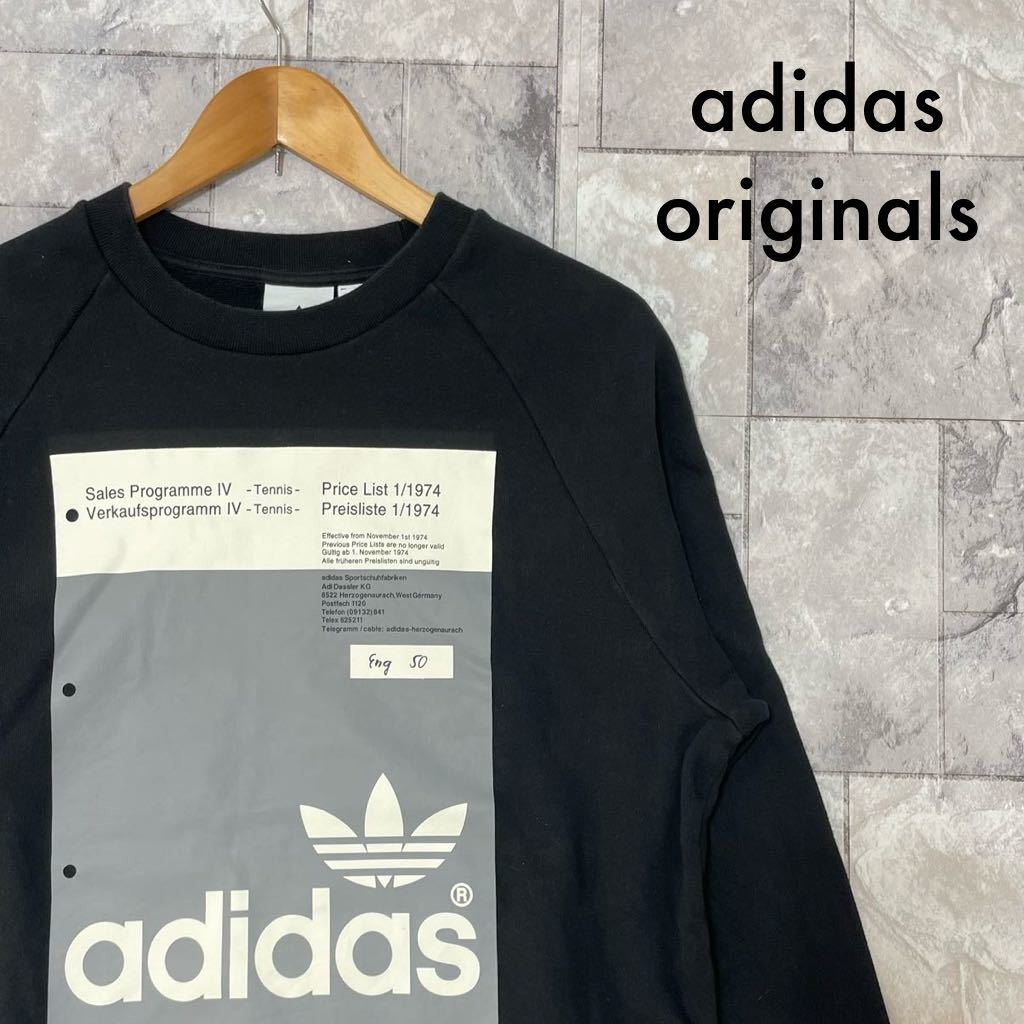 adidas originals アディダス オリジナルス sweat スウェット ビッグプリントロゴ トレーナー ラグラン ブラック サイズL 玉FL3372