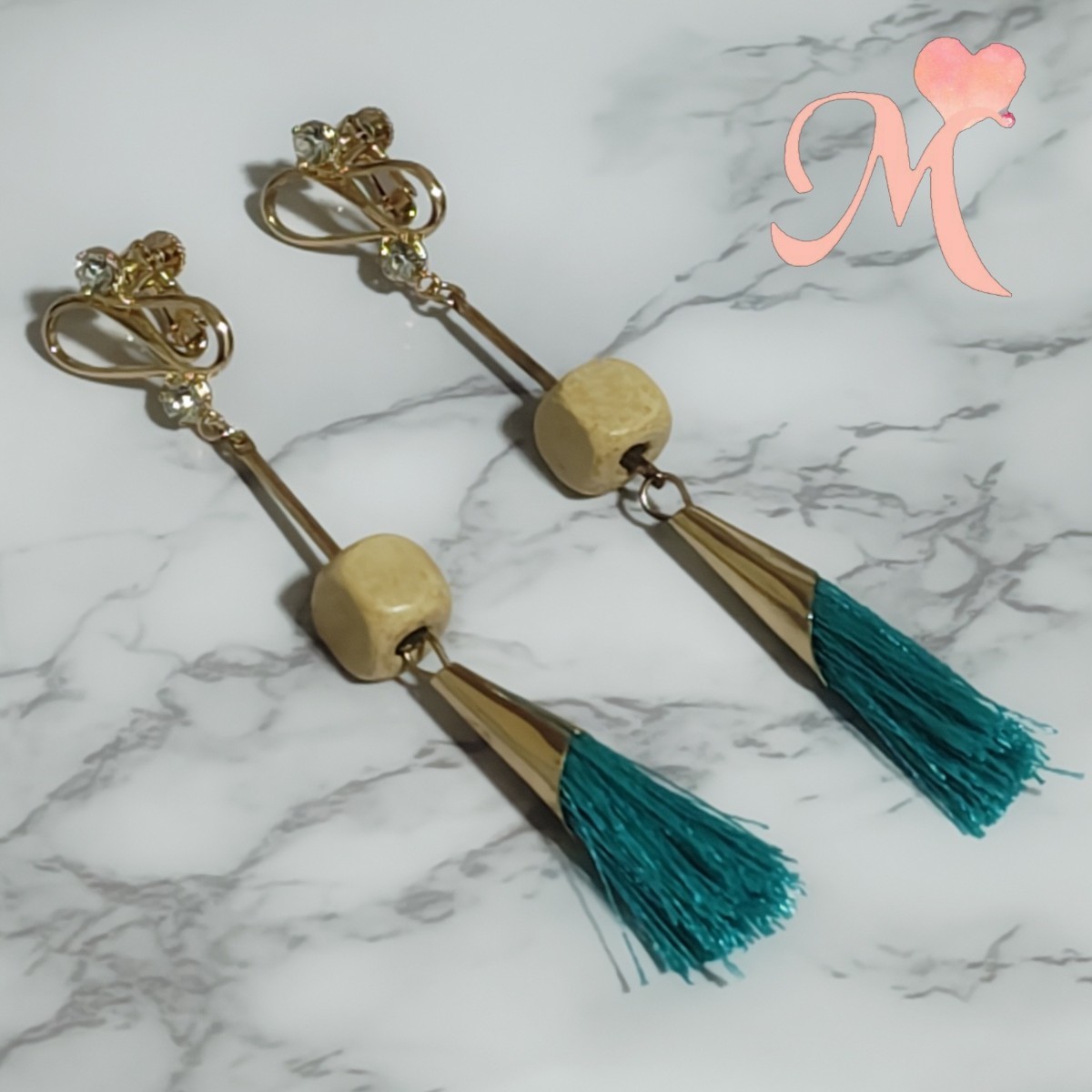 ハンドメイド イヤリング or ピアス カーブライン 変退色防止加工済み アレルギー対応 ピアスパーツ 316L ステンレス タッセル