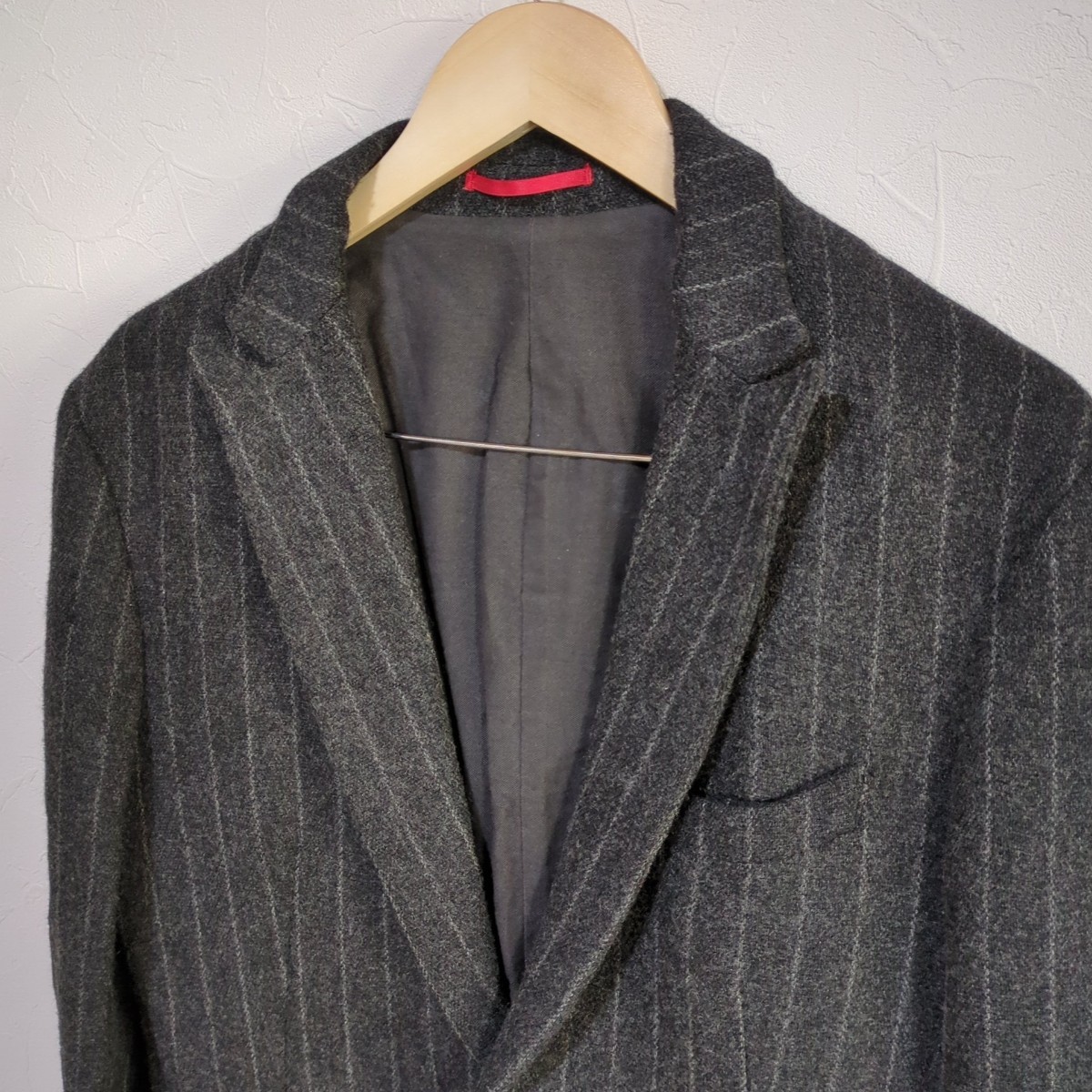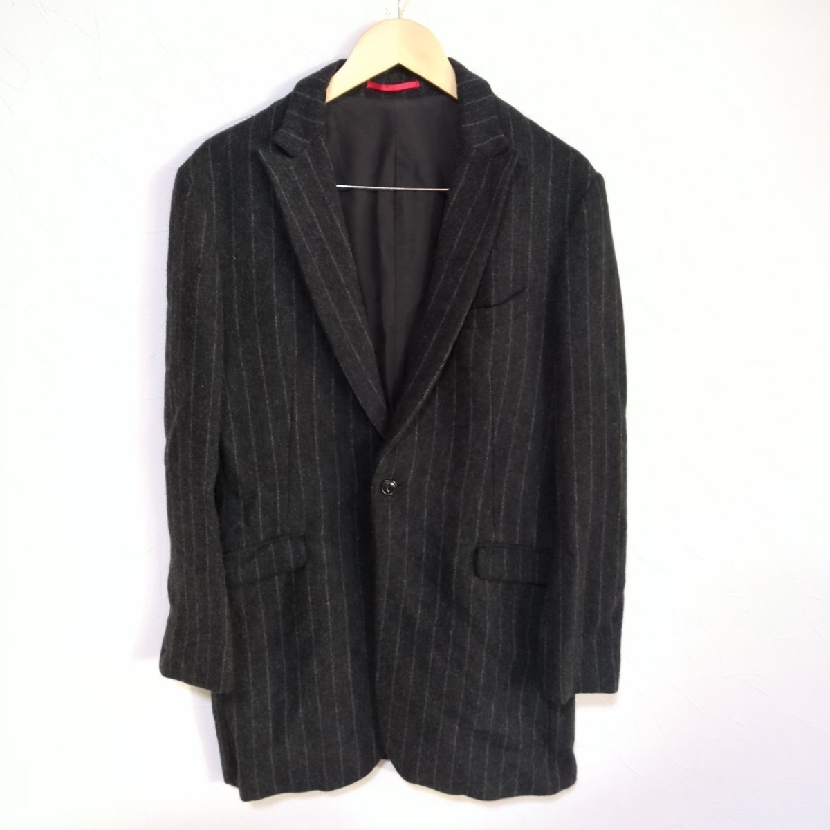 F9316AL hiromichi nakano ヒロミチナカノ サイズL チェスターコート ウールコート グレー ストライプ柄 メンズ ロングコート きれいめ