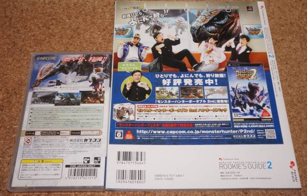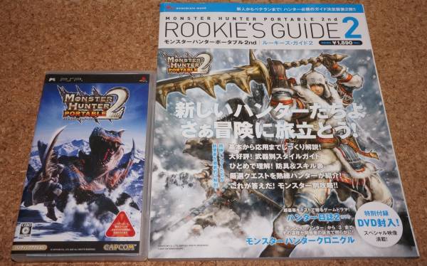 モンスターハンター ポータブル 2nd中古品 と ルーキーズ・ガイド2中古本のセットです。