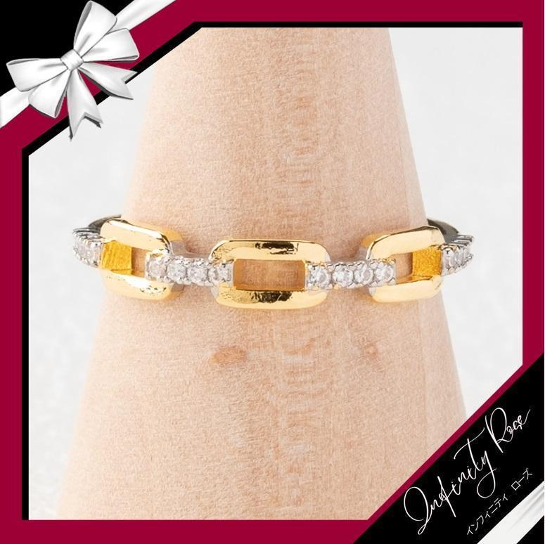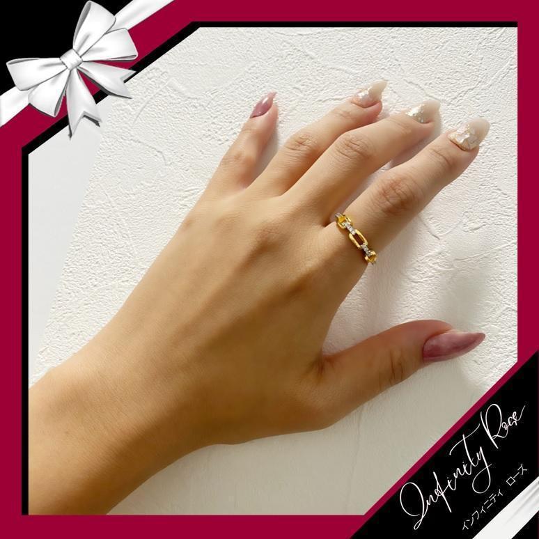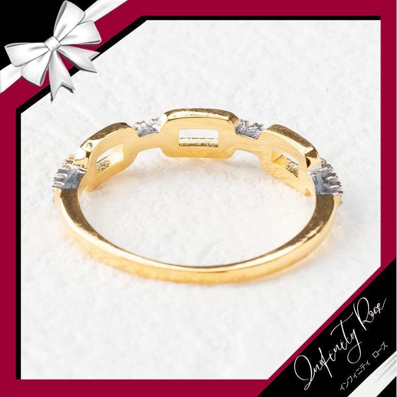 (R025G)11号 ゴールド重なり合うスクエア細リング 爪留め仕様 指輪