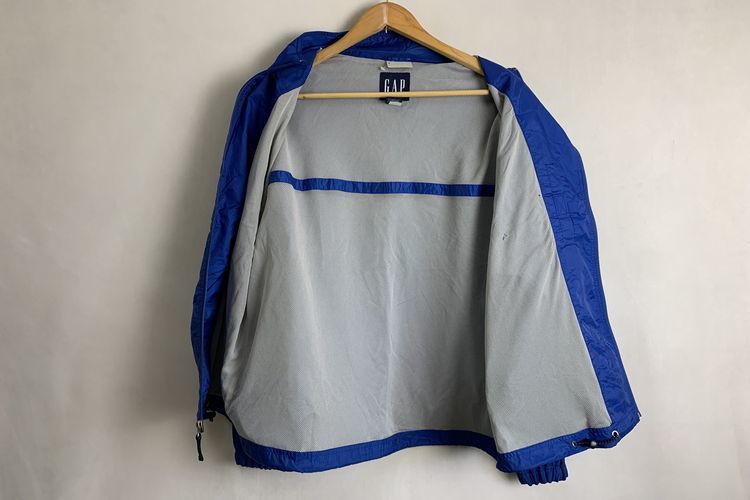 ビンテージOLD GAPオールドギャップスタンドカラーリップストップナイロンラインジャケットAS-IS品Lブルーアウトドアアメカジnr24299