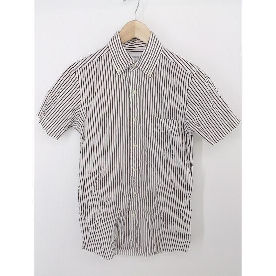 ◇ green label relaxing UNITEDARROWS ボタンダウン BD ストライプ 半袖 シャツ サイズS ホワイト ブラック メンズ P