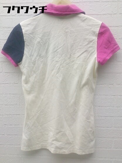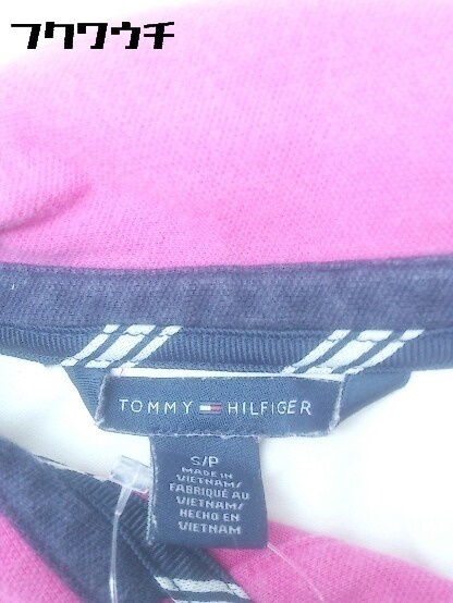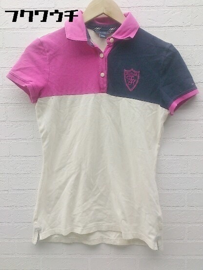 ◇ TOMMY HILFIGER トミーヒルフィガー 鹿の子 半袖 ポロシャツ S オフホワイト ピンク ネイビー * 1002799158589