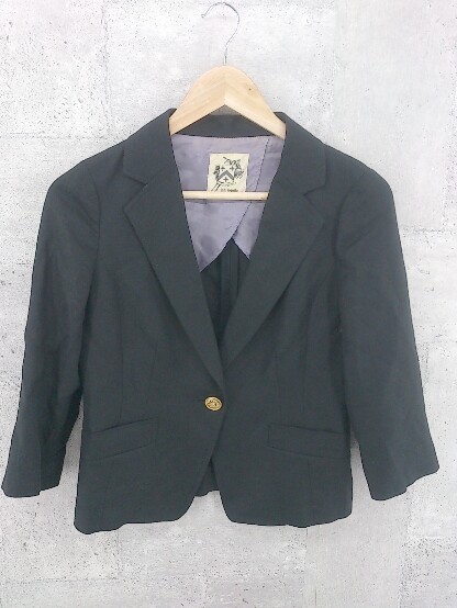 ◇ heliopole エリオポール リネン混 七分袖 テーラード ジャケット 34 ブラック レディース
