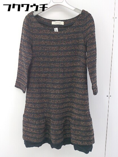 ◇ Jewel Changes ジュエルチェンジズ ラメ糸 ボーダー 長袖 ミニ ワンピース ベージュ系 レディース