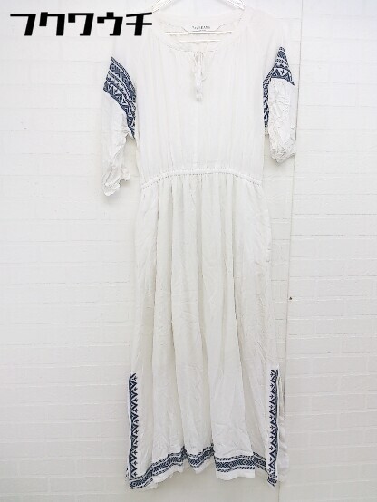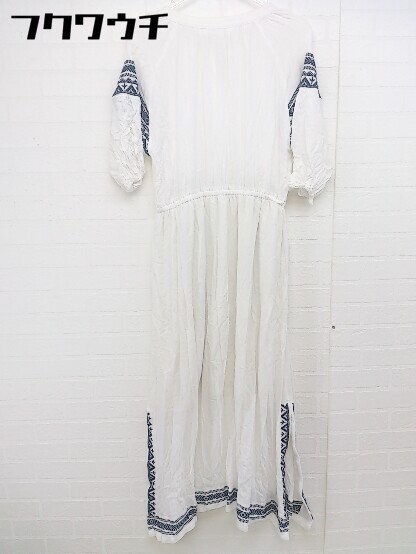 ◇ Ray BEAMS レイビームス 刺繍 七分袖 膝下丈 ワンピース ホワイト レディース
