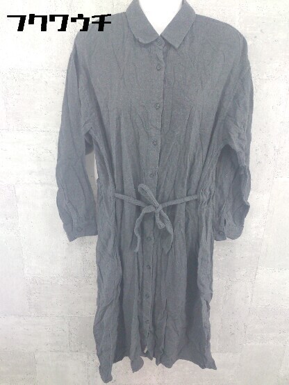 ◇ ◎ UNIQLO ユニクロ 長袖 膝下丈 シャツ ワンピース サイズL ダークグレー レディース