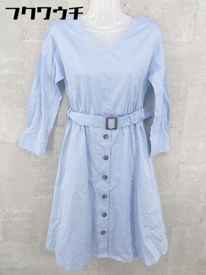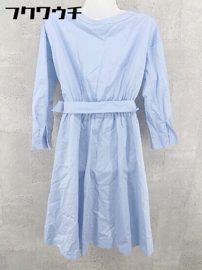 ◇ ◎ NATURAL BEAUTY BASIC Vネック ウエストゴム 長袖 膝丈 ワンピース サイズS ライトブルー レディース