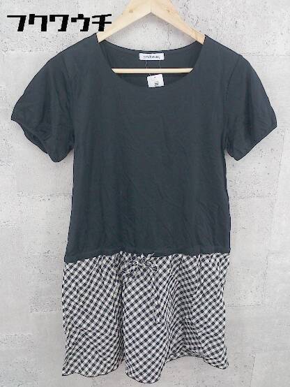 ◇ NEWYORKER ニューヨーカー チェック 切り替え 半袖 ミニ ワンピース サイズL ブラック ホワイト レディース