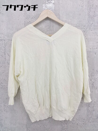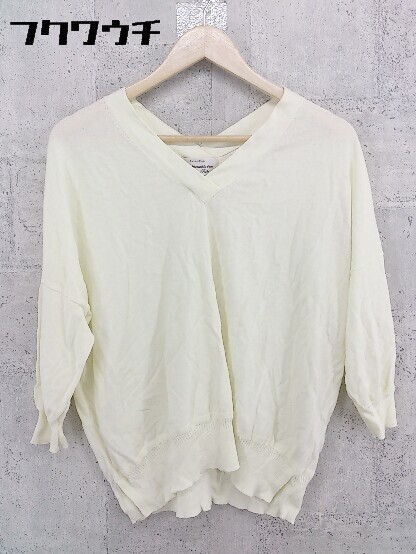 ◇ nano universe ナノユニバース コットン 五分袖 Vネック セーター サイズFREE アイボリー レディース