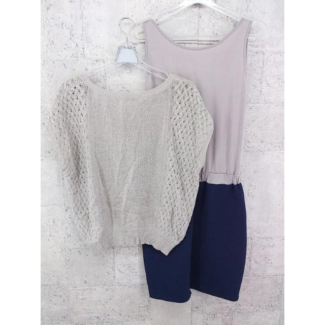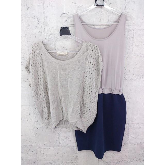 ◇ Broderie & Co nano universe ワンピース ニット セーター アンサンブル サイズF グレー ネイビー レディース