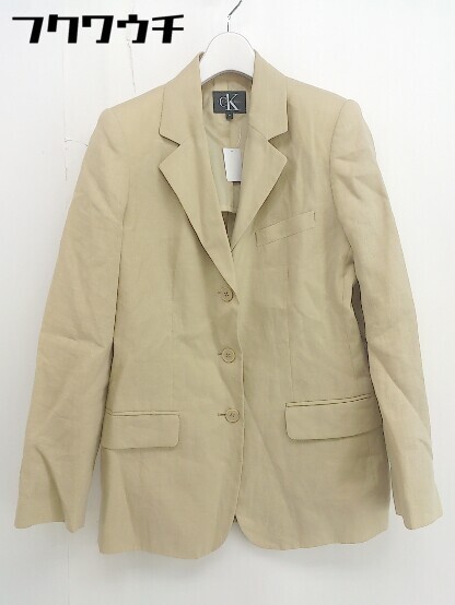 ◇ ◎ Calvin Klein カルバンクライン リネン100% 長袖 テーラード ジャケット サイズ6 ベージュ レディース