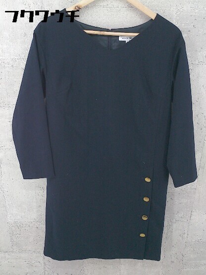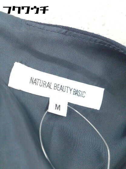 ◇ NATURAL BEAUTY BASIC ナチュラルビューティーベーシック Vネック 長袖 膝丈 ワンピース サイズM ネイビー レディース