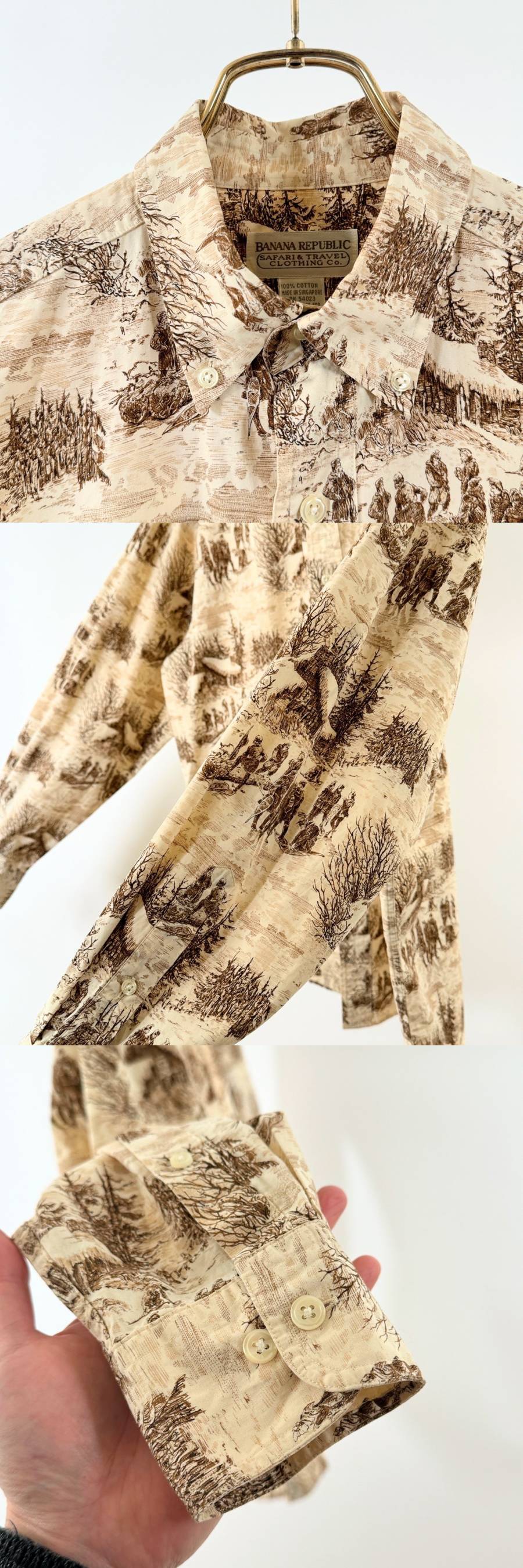 希少《 Mint Condition / BANANA REPUBLIC 》80s90s 極上品【 サファリ バナリパ 総柄 コットン BDシャツ M ビンテージ 】