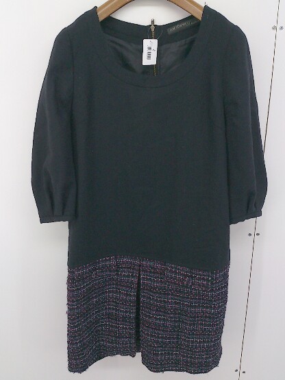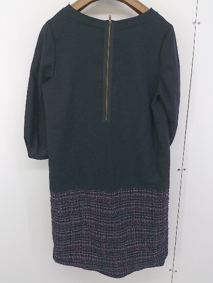 ◇ emit of energy Ray BEAMS レイビームス ツイード 切替 七分袖 ミニ ワンピース サイズ1 ブラック マルチ レディース