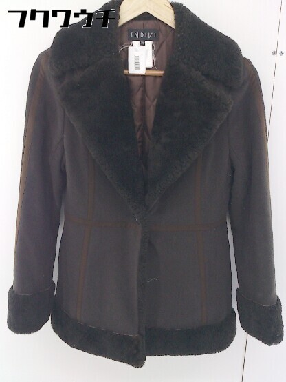 ■ INDIVI インディヴィ ボア 長袖 中綿 コート サイズ38 ブラウン レディース