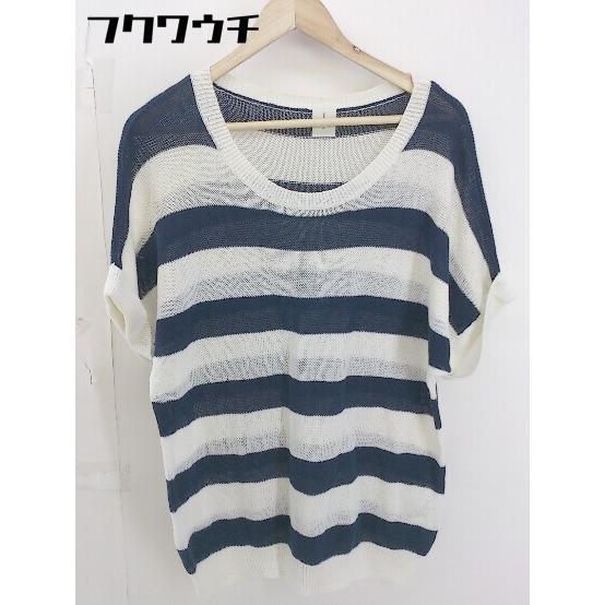 ◇ ADAM ET ROPE un ボーダー 半袖 ニット セーター サイズ 38 ホワイト ネイビー レディース