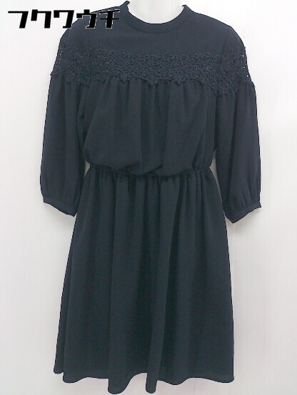 ◇ AG by aquagirl エージー バイ アクアガール レース 八分袖 膝丈 ワンピース サイズS ネイビー レディース