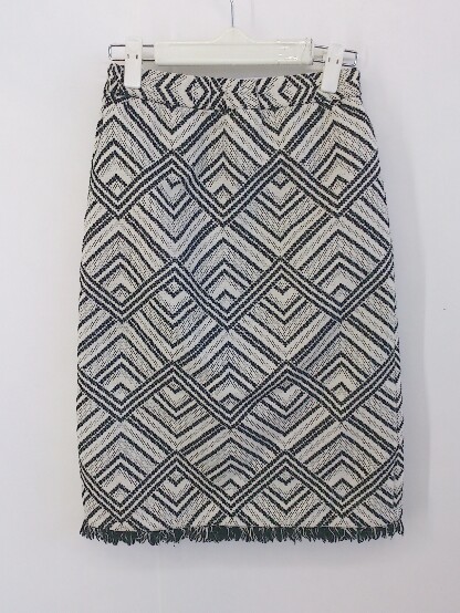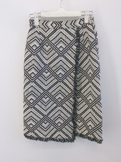 ◇ ROPE' ロペ 総柄 ラップ巻き 膝下丈 ナロー スカート サイズ36 オフホワイト系 ブラック レディース P