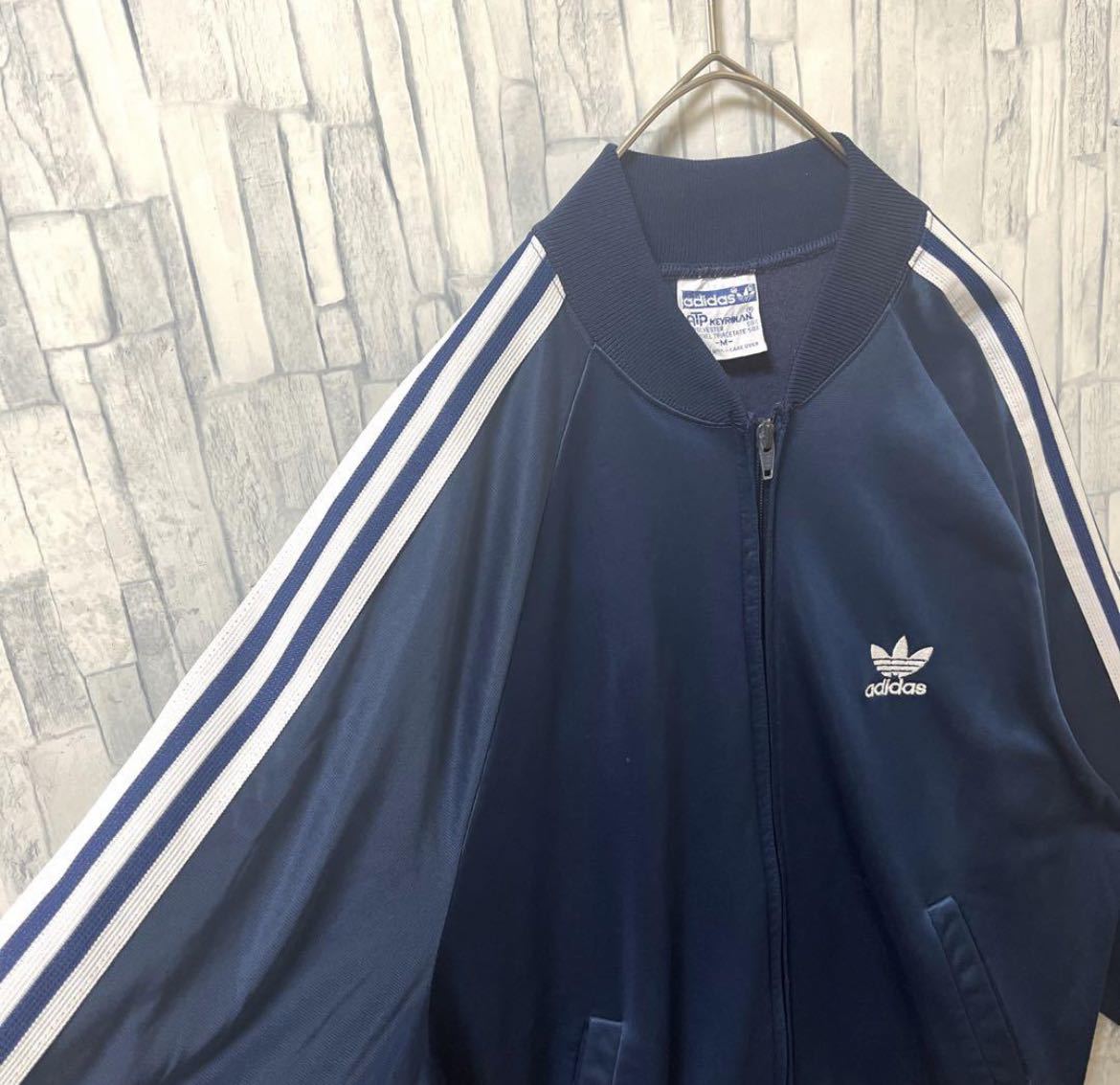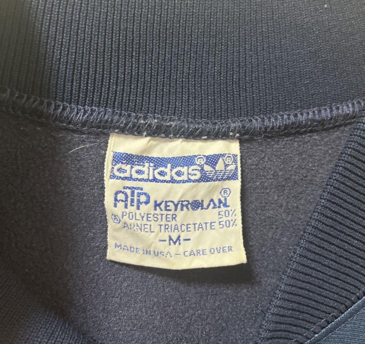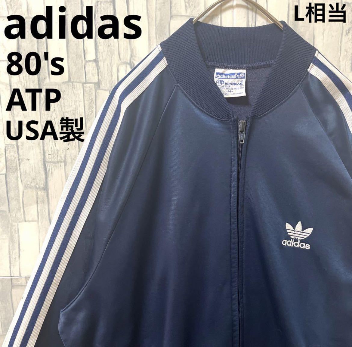 adidas オールド アディダス ジャージ 上 トラックジャケット ATP KEYROLAN 80s 80年代 サイズM ネイビー トレフォイル 刺繍ロゴ 長袖 ヴィンテージ 3ライン 3ストライプ USA製 送料無料の出品です。