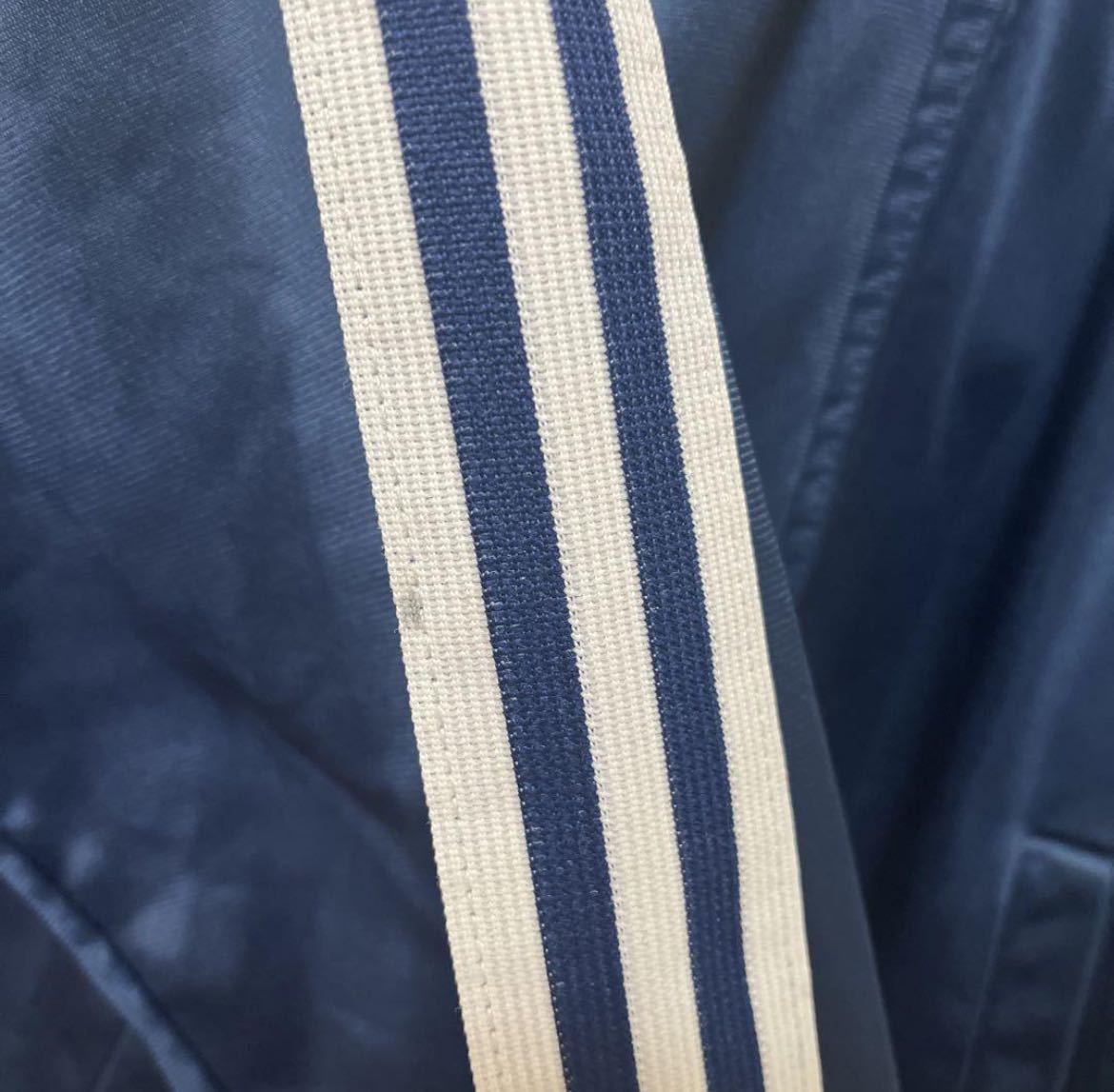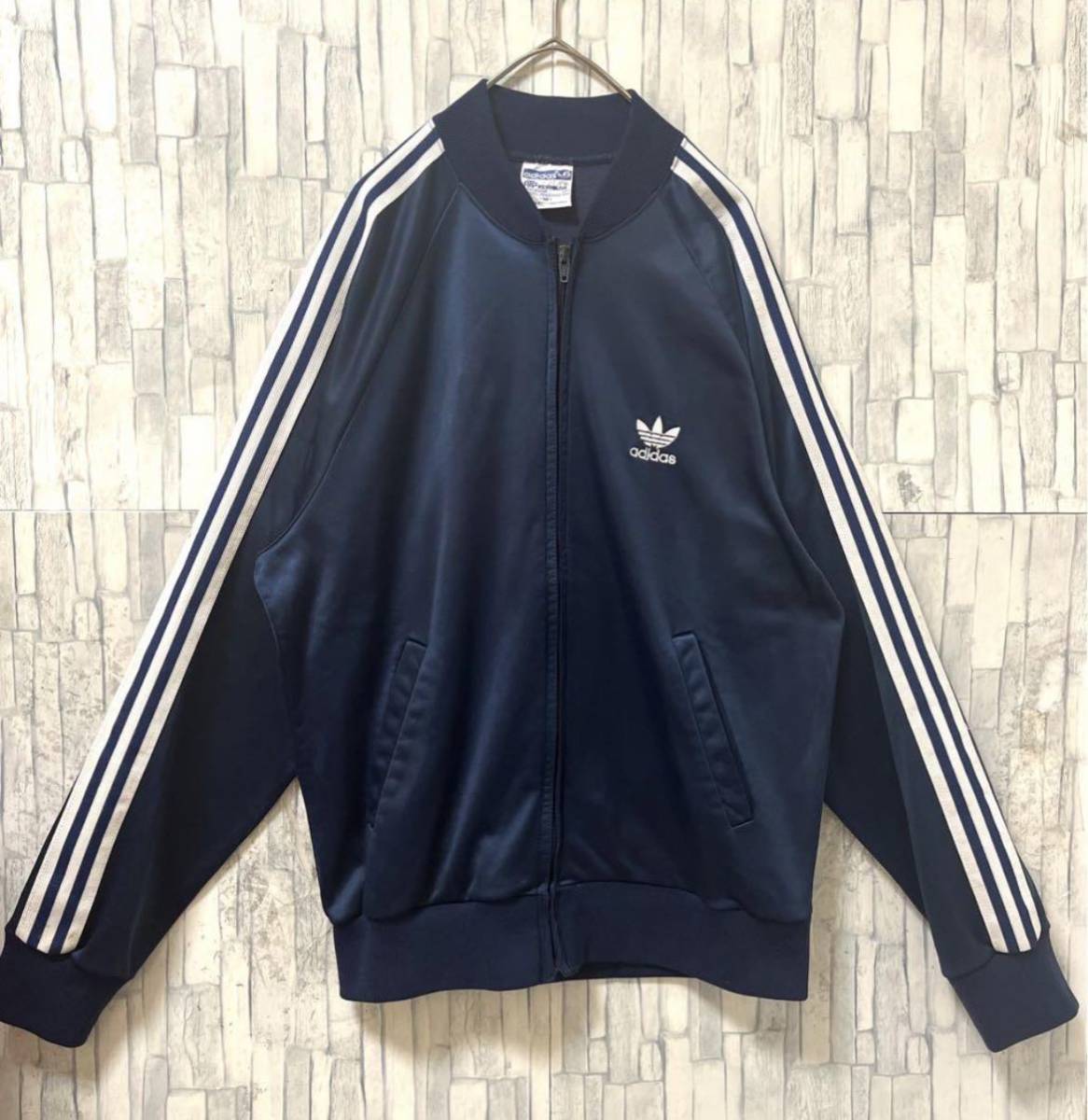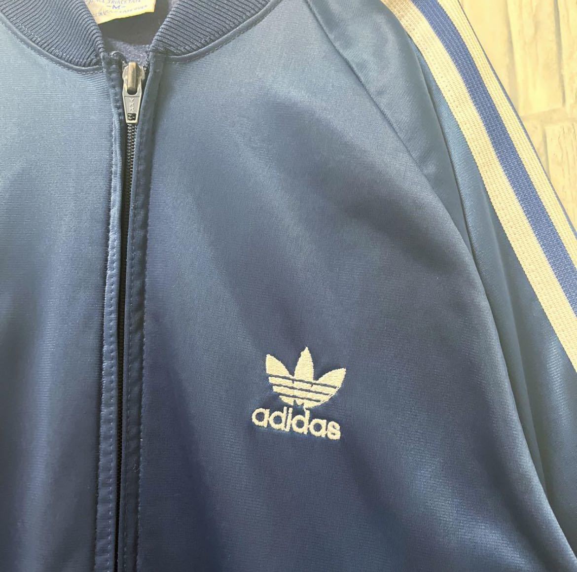 adidas オールド アディダス ジャージ 上 トラックジャケット ATP KEYROLAN 80s 80年代 サイズM ネイビー トレフォイル 刺繍ロゴ 長袖 ヴィンテージ 3ライン 3ストライプ USA製 送料無料の出品です。