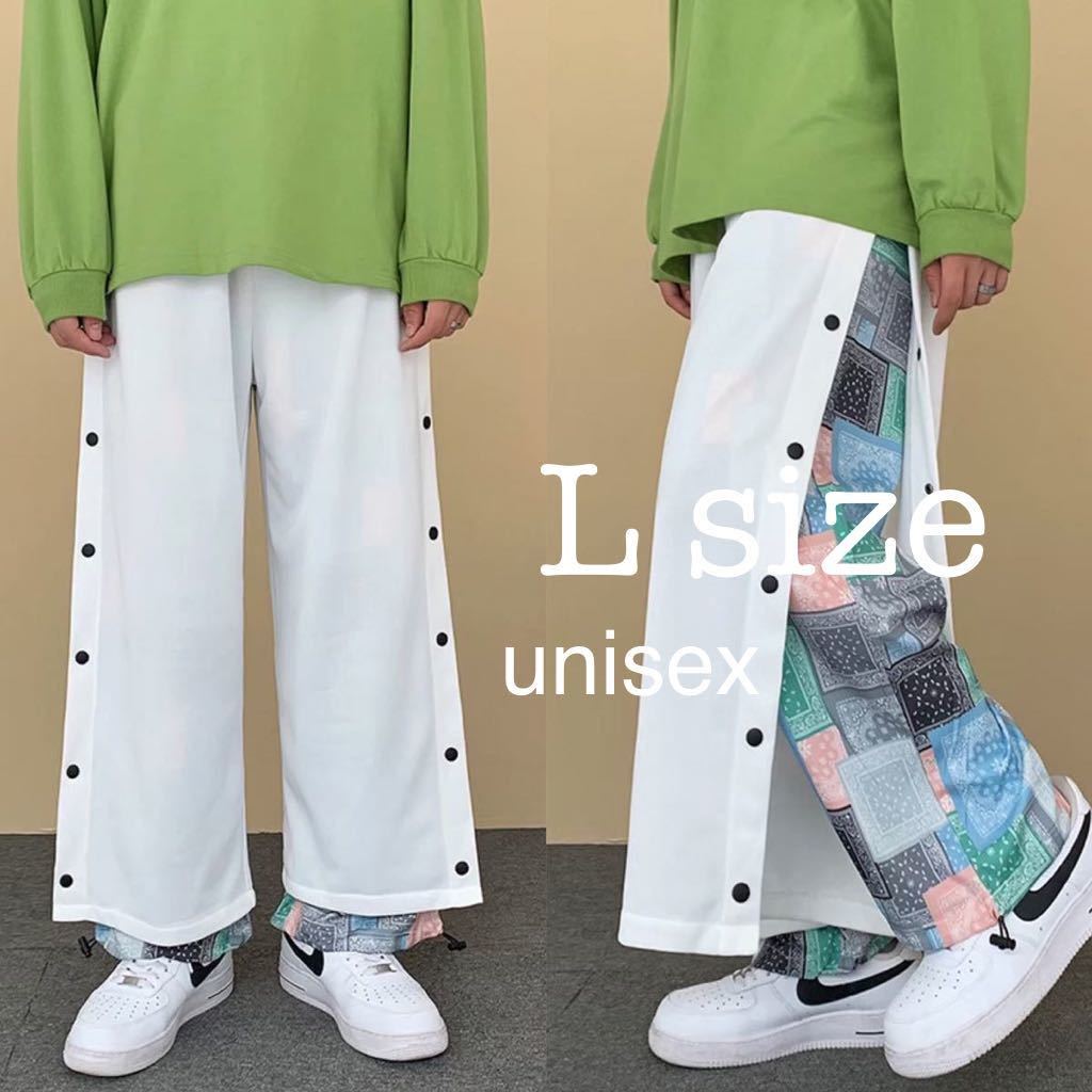 ワイドパンツ ボトムス ペイズリー サイドボタン ストレートパンツ