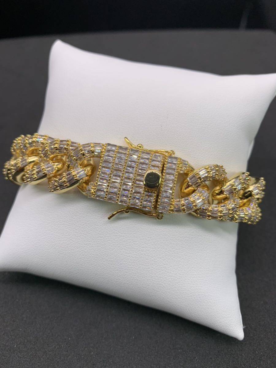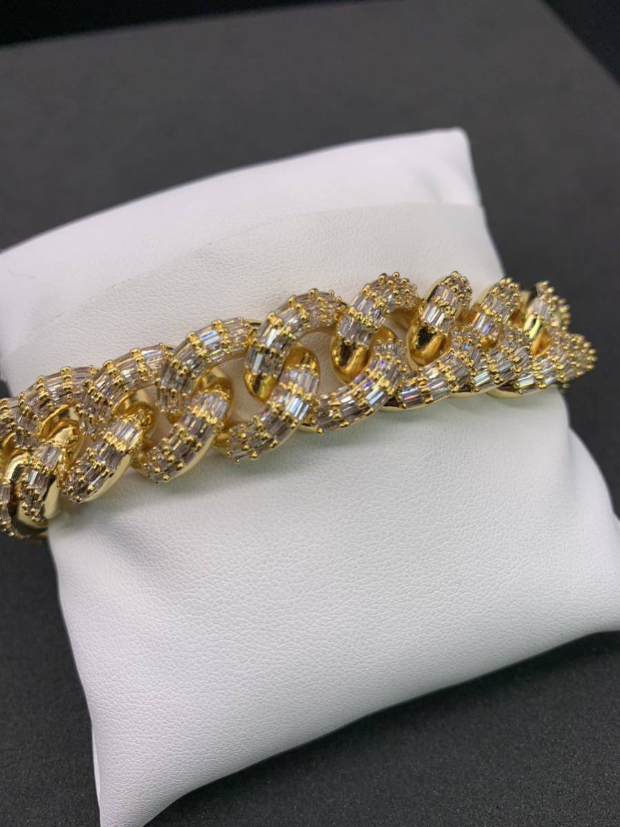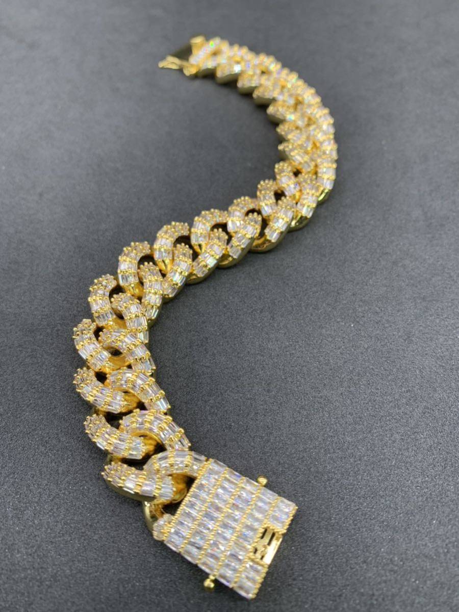 長方形の高品質ジルコニアダイヤが丁寧に爪留めされ、びっしり敷き詰められた豪華で高級感、輝き抜群な一品です。様々な角度で反射して輝きが凄いです。