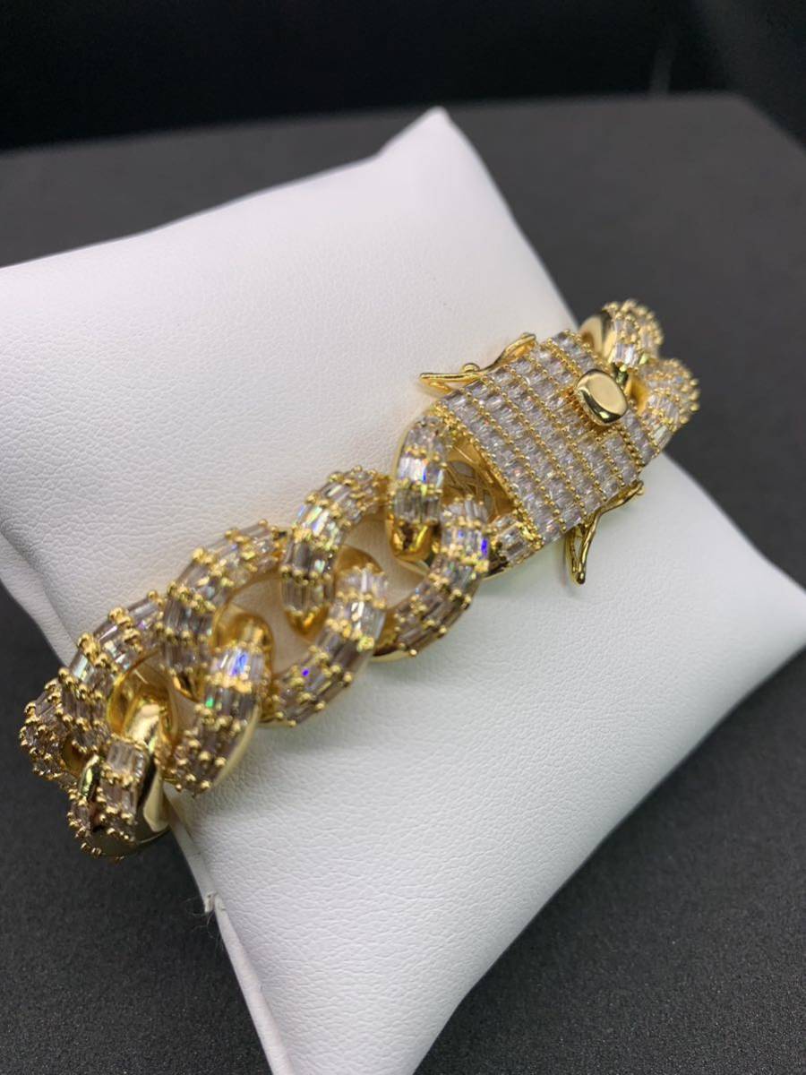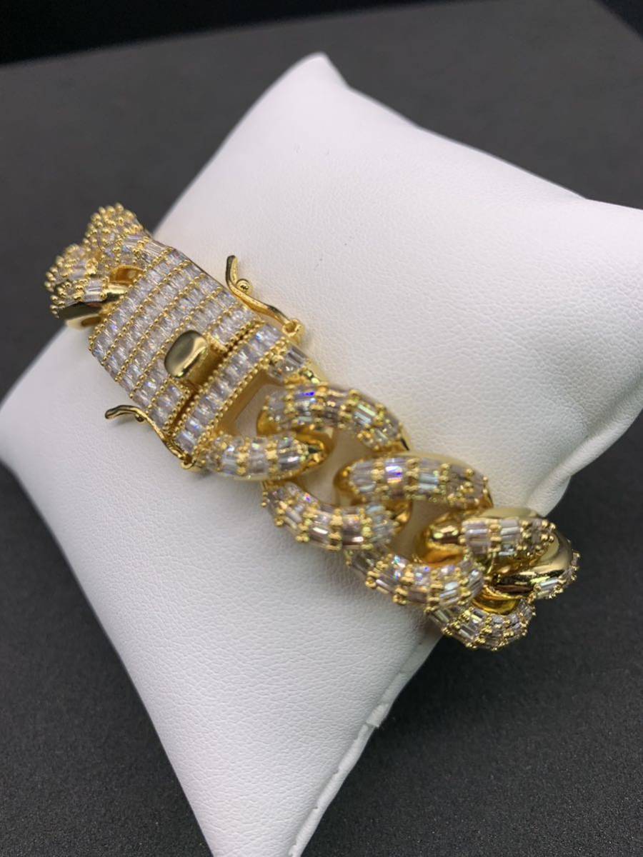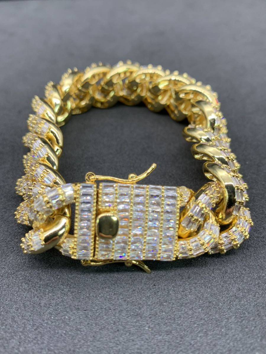 長方形の高品質ジルコニアダイヤが丁寧に爪留めされ、びっしり敷き詰められた豪華で高級感、輝き抜群な一品です。様々な角度で反射して輝きが凄いです。