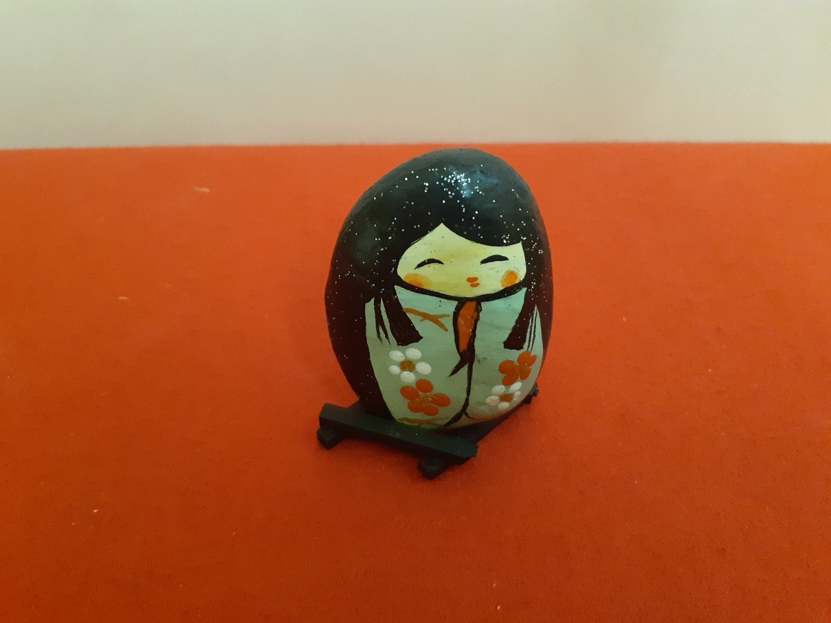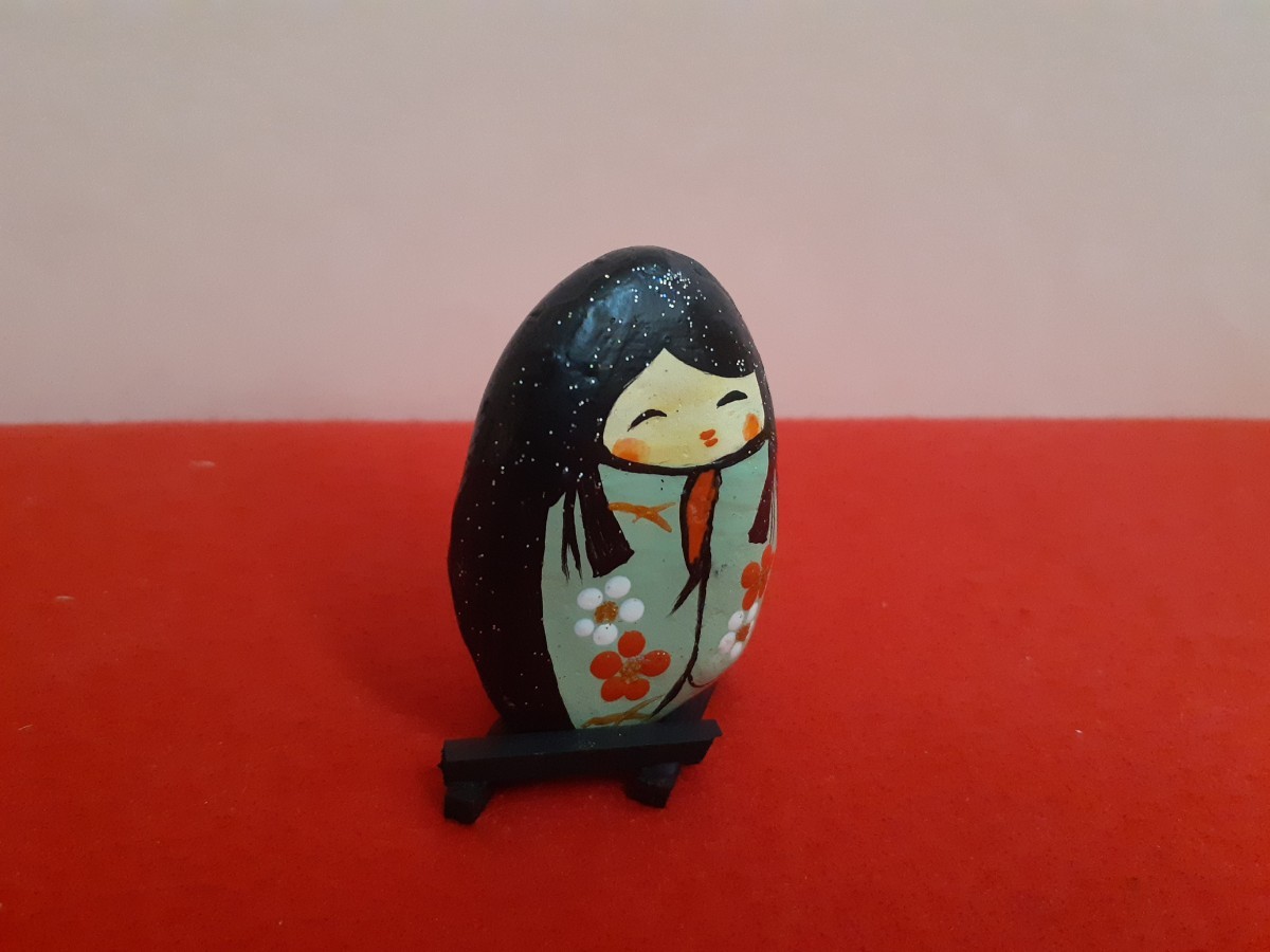『石こけし』を真心を込めてデザイン、色付け…してニス仕上げで制作致しました。