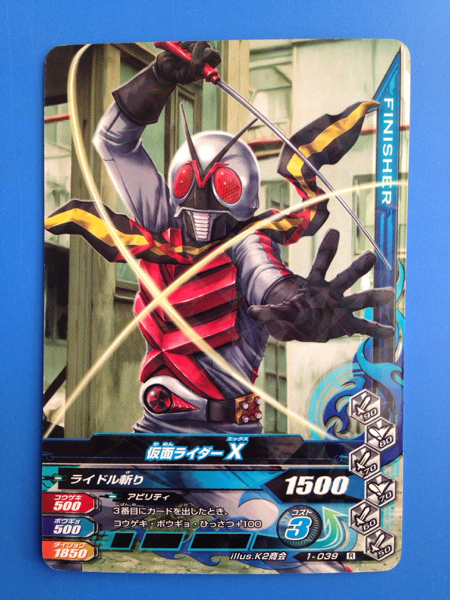仮面ライダー、ガンバライジングの第1弾から、No.039《仮面ライダーX》の登場です。発送は、普通郵便を利用します。(特にご希望のない場合)おとりまとめも可能ですが、送料に変動する場合がございます。また、送料のご請求は、自宅での計量を基準にご請求させていただいておりますので、実際の金額と差異が出る場合もございます。予めご了承ください。他にも多数出品中です。まとめてこの機会にいかがでしょうか?ご質問お待ちしております。