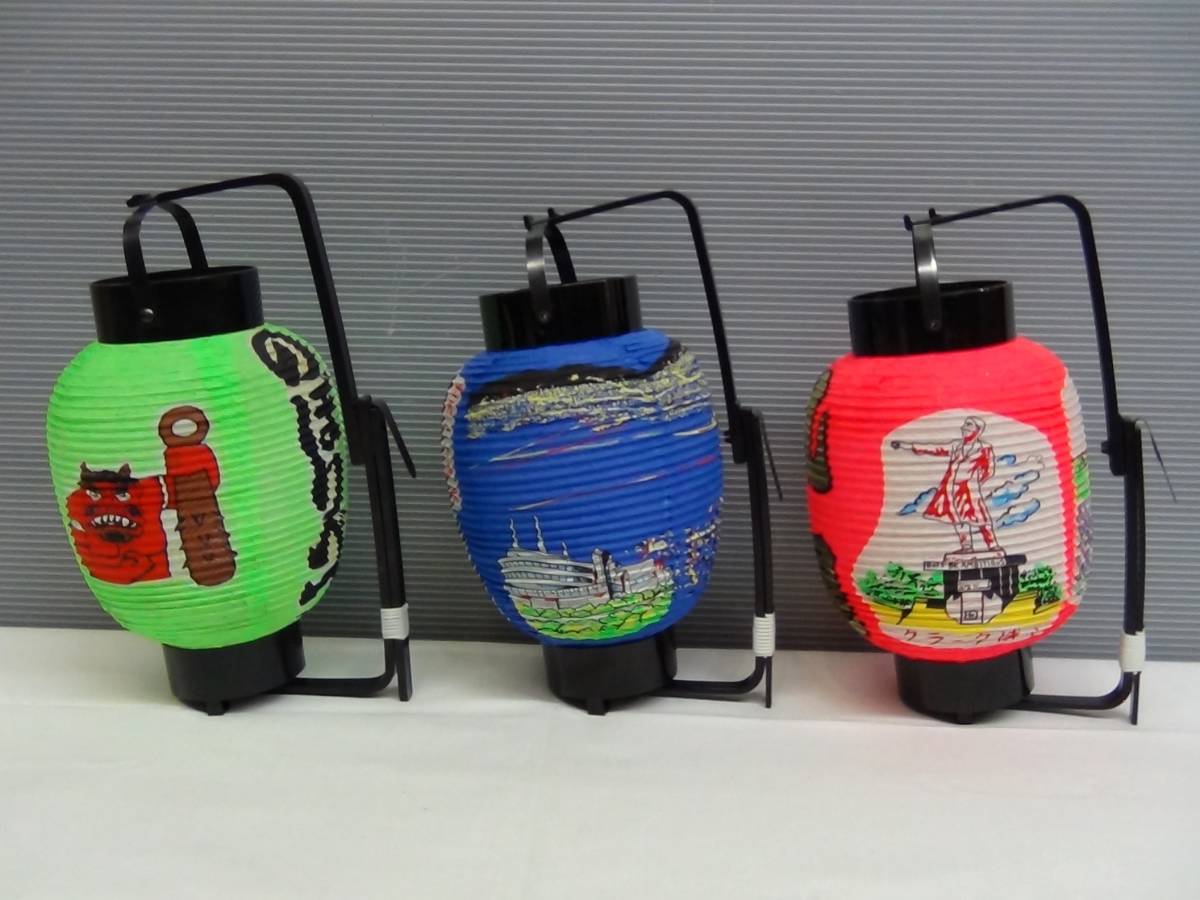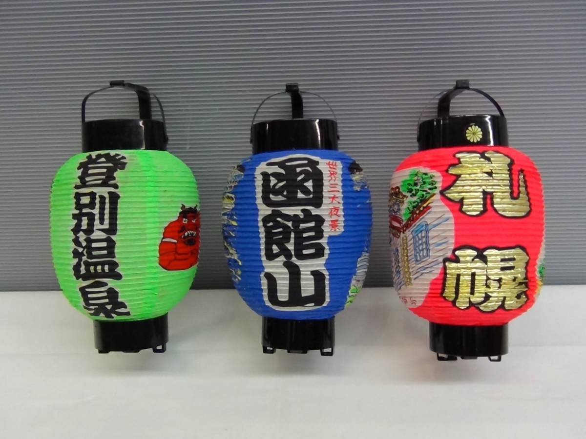 送料無料☆民芸 提灯 登別温泉 地獄谷・函館山・札幌☆3個set おみやげ 当時物