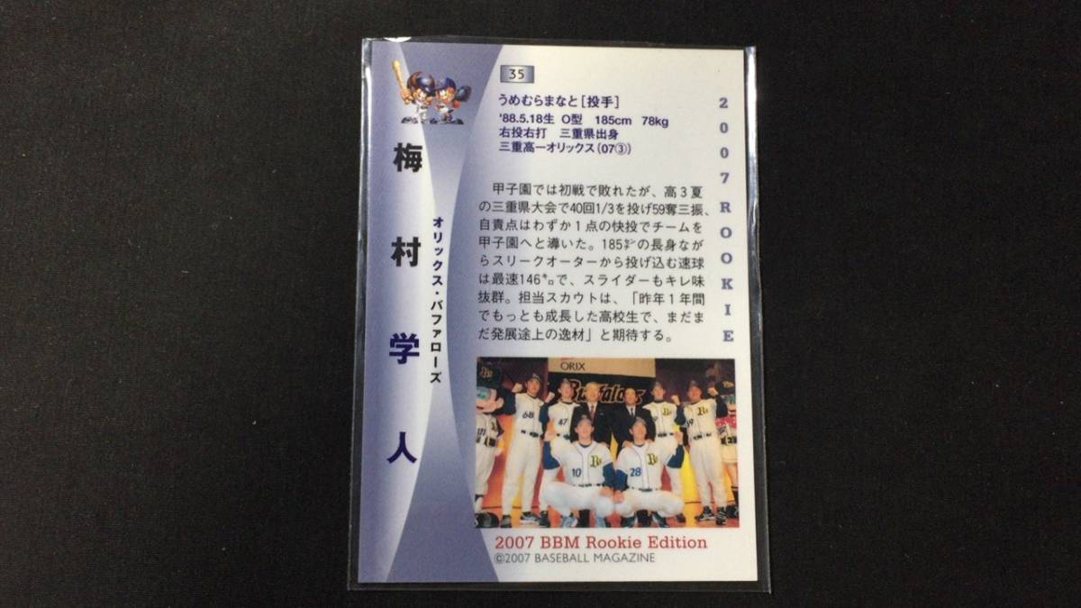 【直筆サイン入りBBM65】梅村学人●オリックスバッファローズ/ブルーウェーブ●検)阪急ブレーブス近鉄プロ野球カードルーキーカルビー