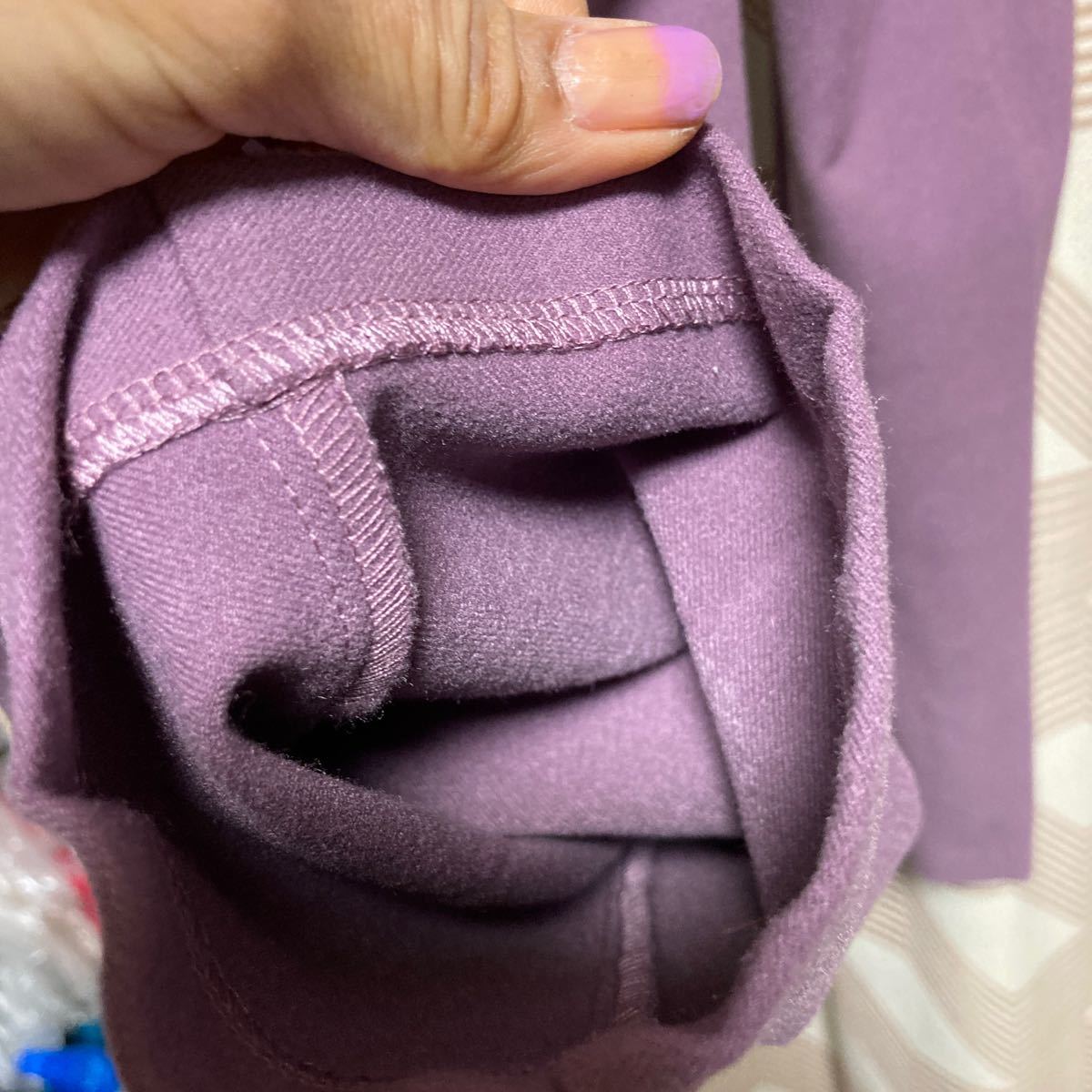 裏地はありませんが起毛っぽいあたたか素材。裾が細身のジャガータイプ