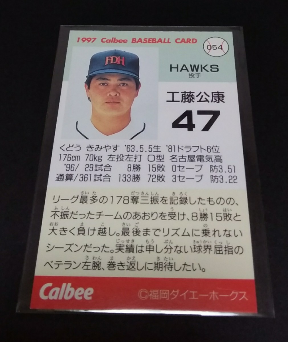 1997年カルビー 工藤公康(ダイエー)No,054。