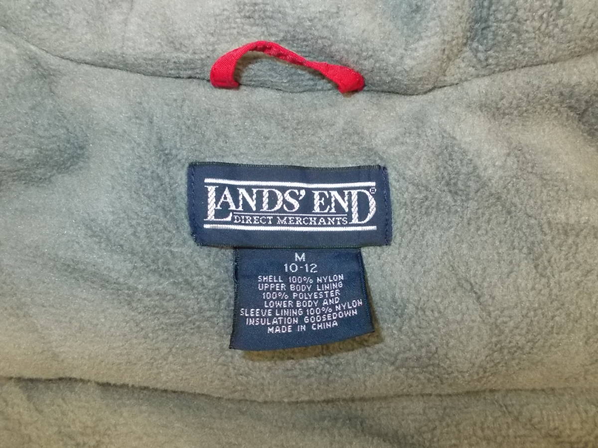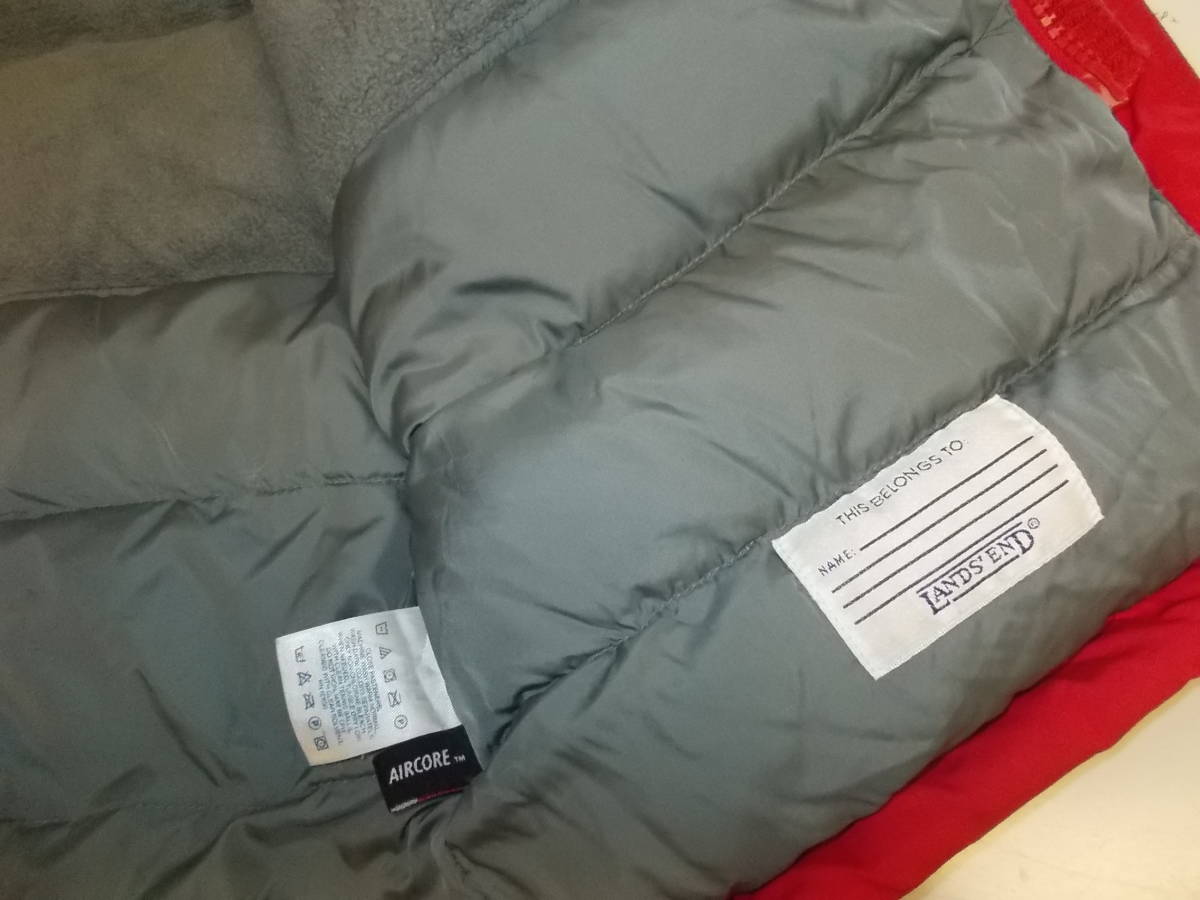 e386◆LANDS'END ダウンジャケット◆サイズM 10-12 赤色 子供 ボーイズ ランズエンド ダウンブルゾン US古着 フード取り外し不可です 6B