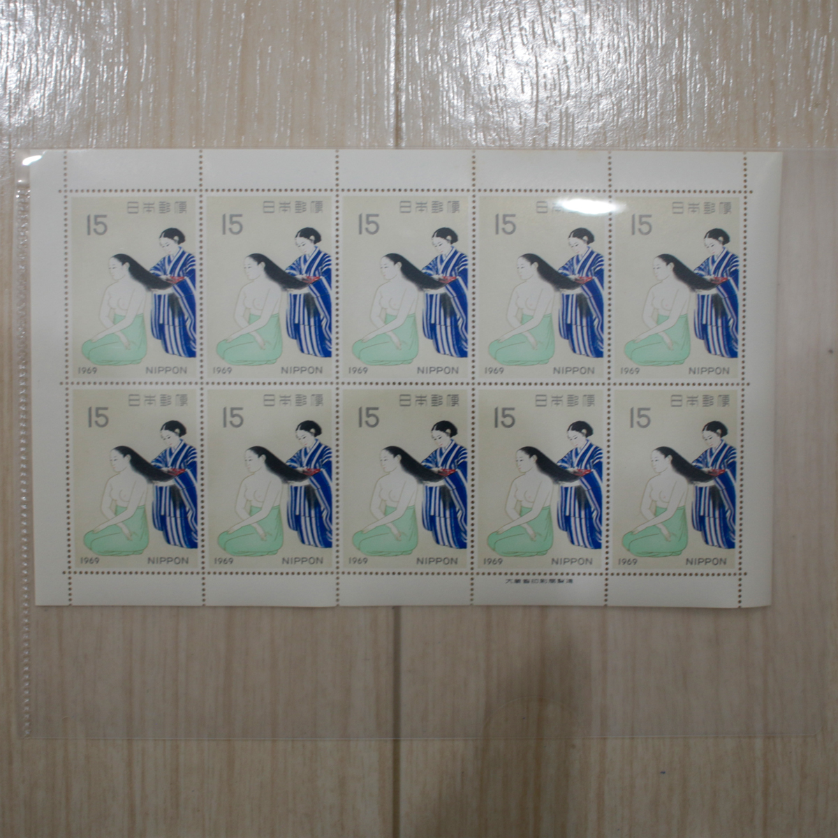 【切手趣味週間 小林古径 髪/1969年/15円×10枚/大蔵省印刷局製造】です。