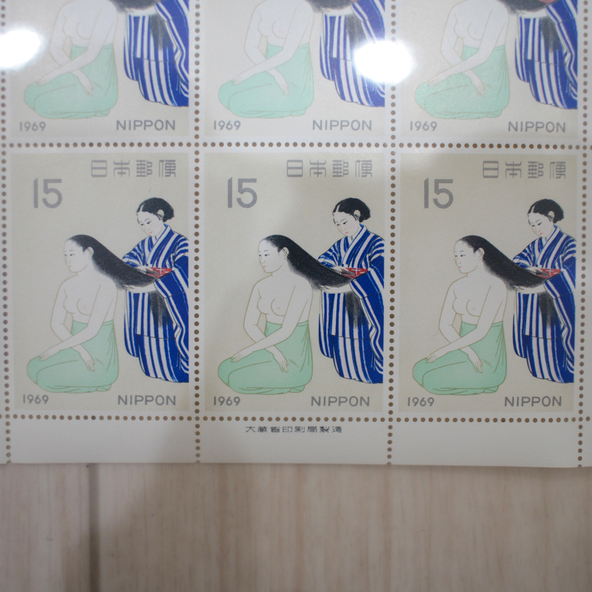 [未使用品]切手シート/日本郵便【切手趣味週間 小林古径 髪/1969年/15円×10枚/大蔵省印刷局製造】ゆうパケットポスト匿名配送