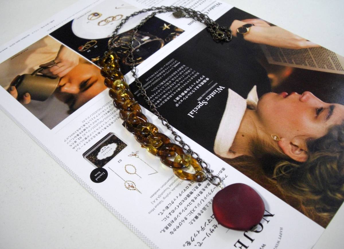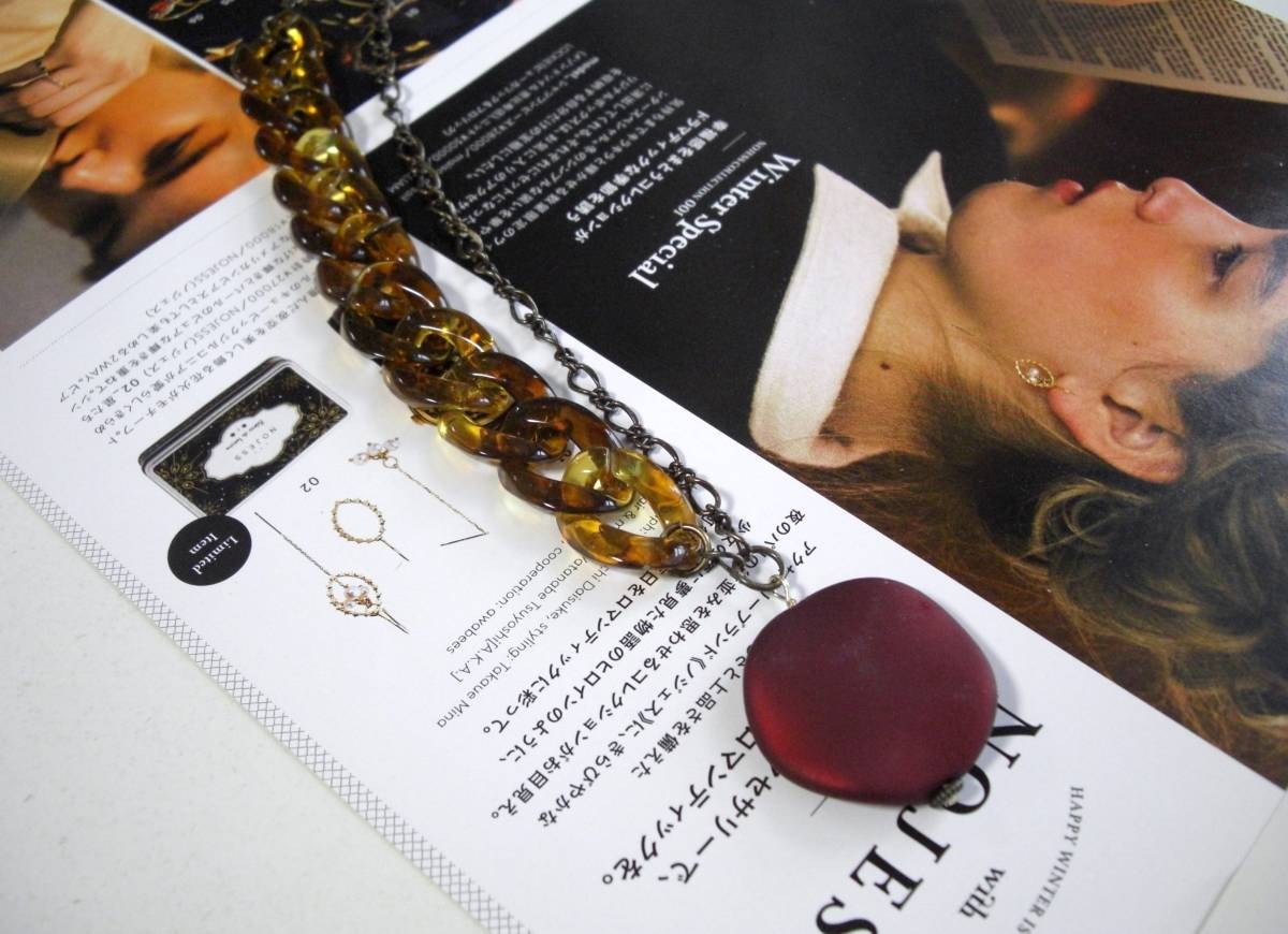もうすぐバレンタイン・・お気に入りの赤を集めて・・シリーズです♪深い赤の樹脂パールや琥珀色の樹脂ビーズを合わせたネックレス2本セットです♪どちらもシンプルなデザインで大人可愛い表情です♪14ミリ、8ミリ、6ミリの大きさ違いの樹脂パールにはデザインチェーンを合わせました♪長さは全長80センチ位で調節自由です♪20ミリ×15ミリ位の琥珀色の樹脂リングのトップには30ミリ位のダークレッドの樹脂パールを合わせました♪長さは全長70センチ位で調節出来ます♪トップは4、5センチ位です♪それぞれ単品やお揃いのブレスレット、ピアスも出品しています♪ハンドメイドをご理解いただいてノークレーム、ノーリターンでお願いします♪