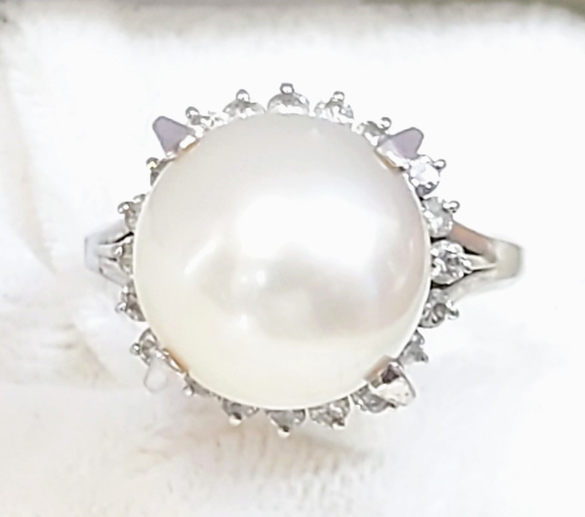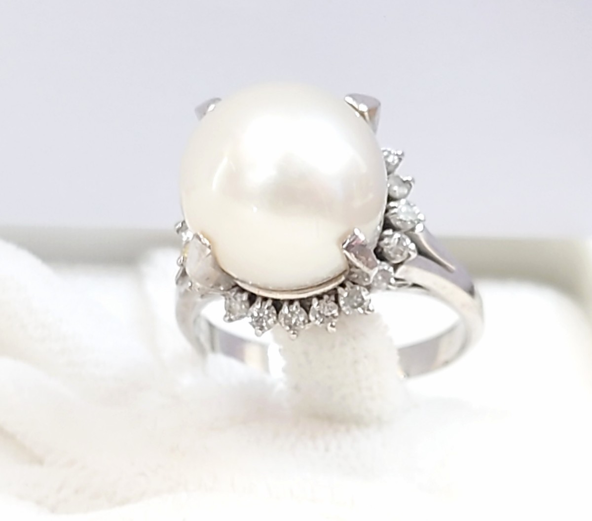 Pt900 南洋真珠 リング 13.5号 指輪 宝石 ジュエリー ダイヤモンド パール プラチナ 鑑別書 南洋パール 12mm ☆kk☆150